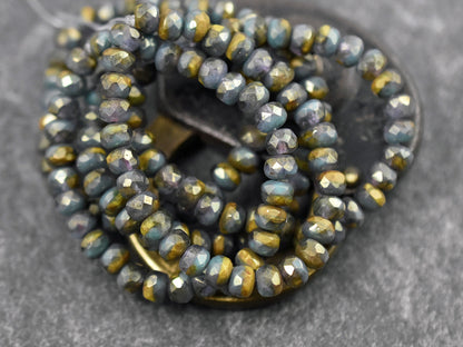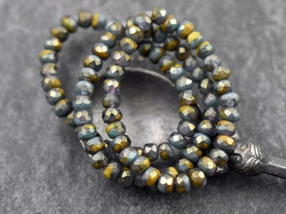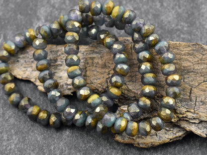 *30* 3x5mm Blended Green, Turquoise & Yellow Luster Fire Polished Rondelle Beads