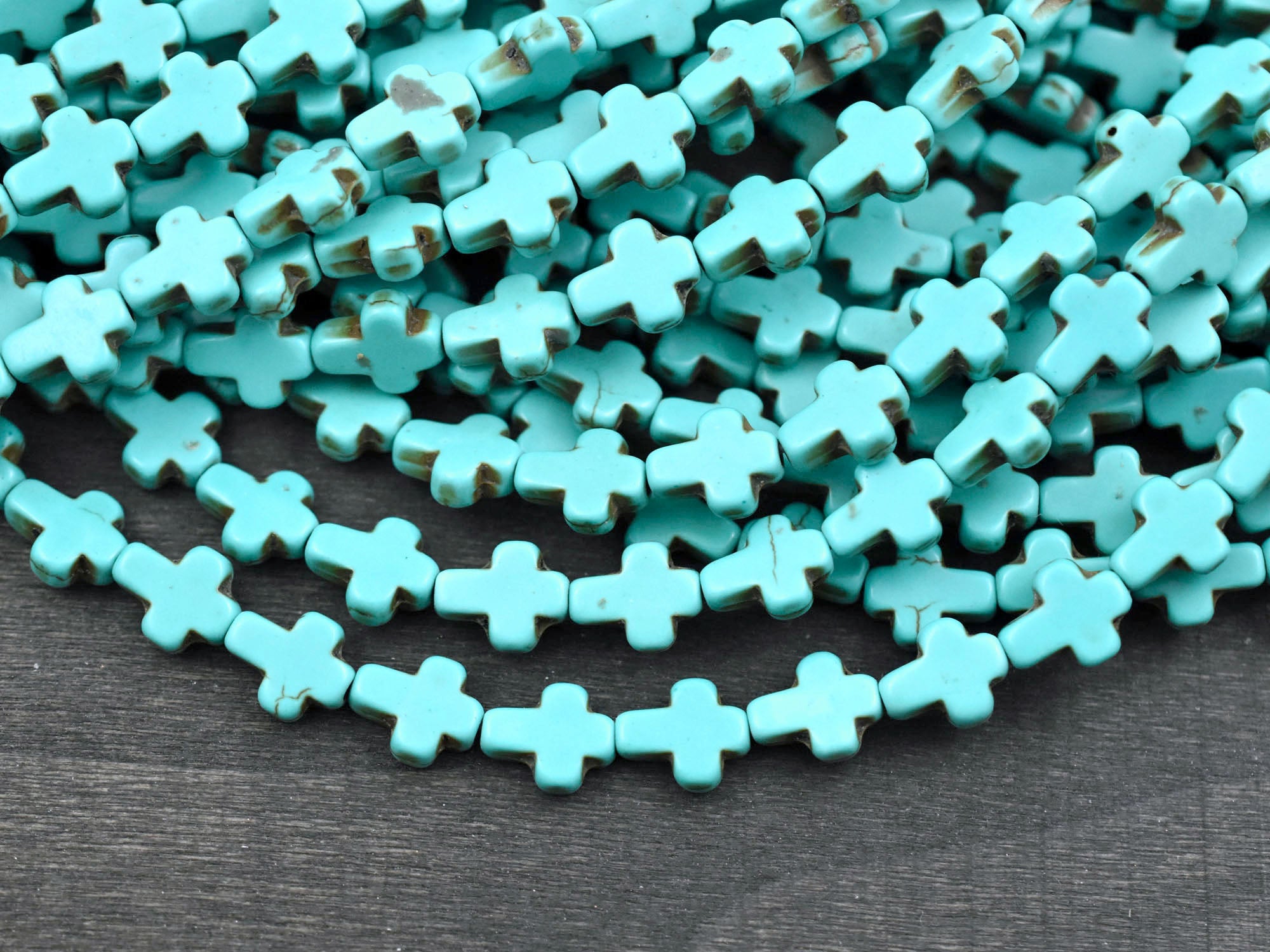 10x8x3mm Synthetic Turquoise Cross Beads 15" Strand