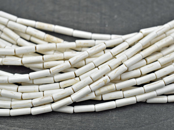 13x4mm Bone Beige Synthetic Turquoise Tube Beads 16" Strand