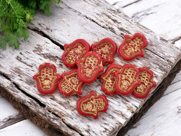 *10* 15x14mm Bronze Washed Matte Red Hamsa Hand Beads