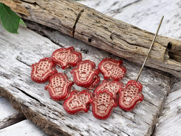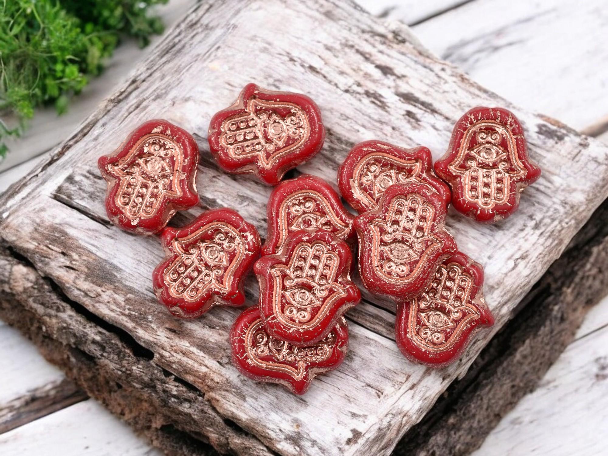 *10* 15x10mm Copper Washed Opaque Cardinal Red Hamsa Hand Beads