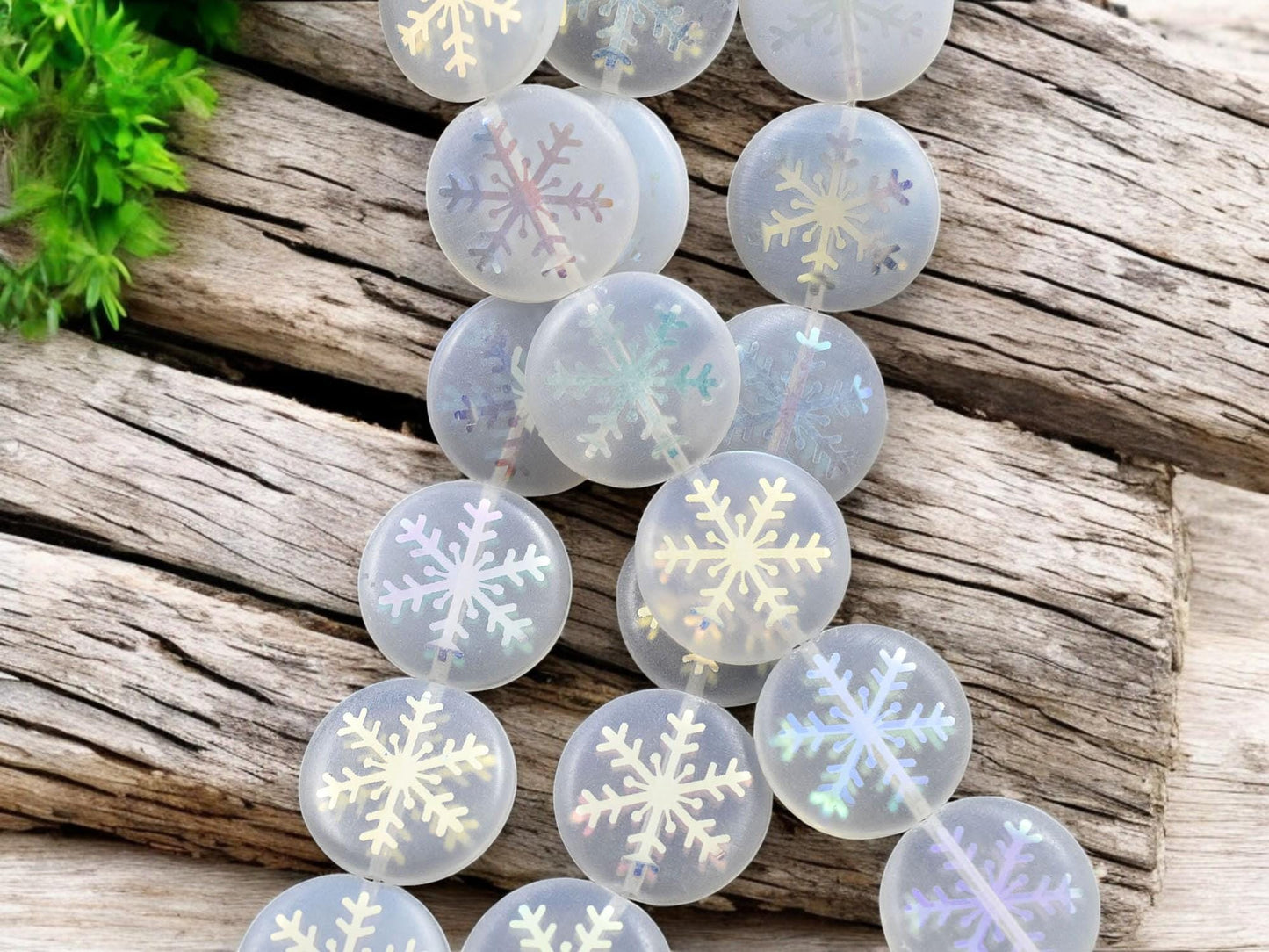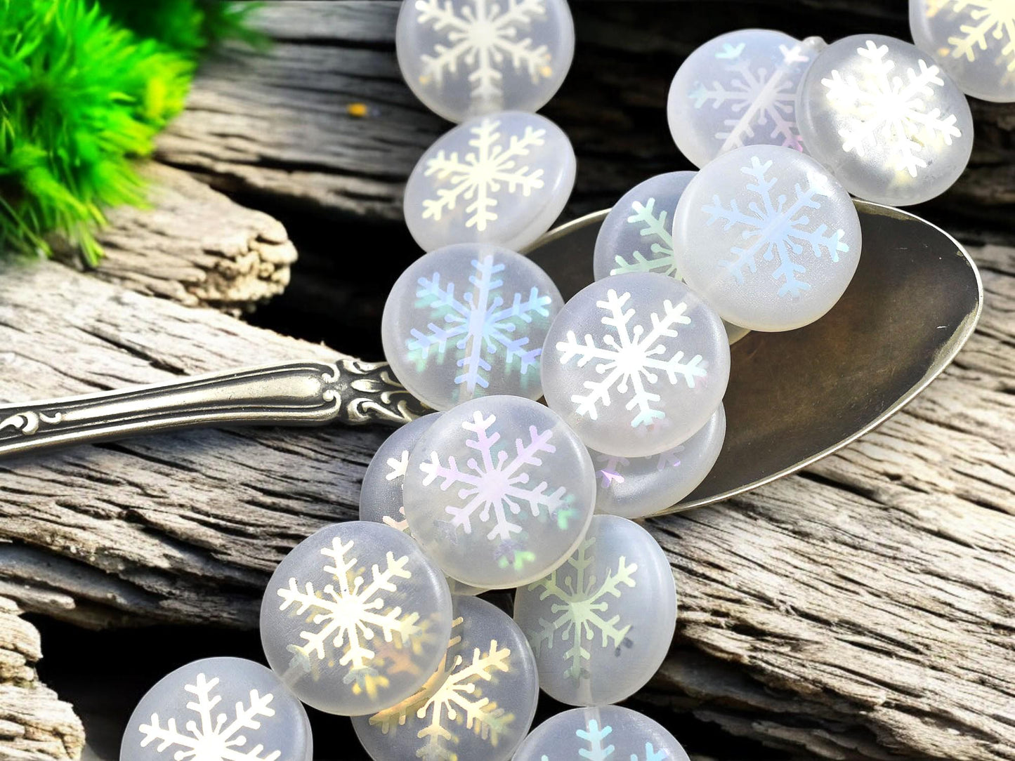 ♥ Type/Shape: Czech glass coin beads with laser etched snowflake design (both sides of bead)