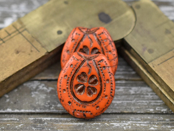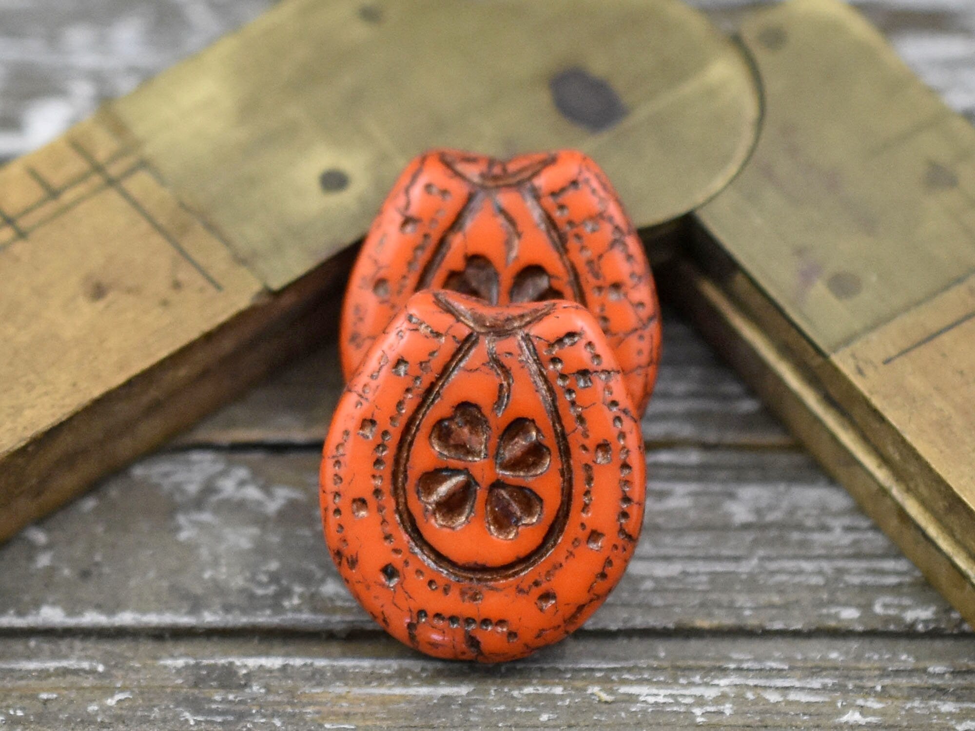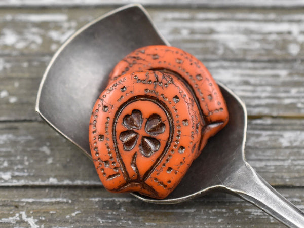 *2* 21x18mm Bronze Patina Washed Opaque Orange Lucky Horseshoe Beads