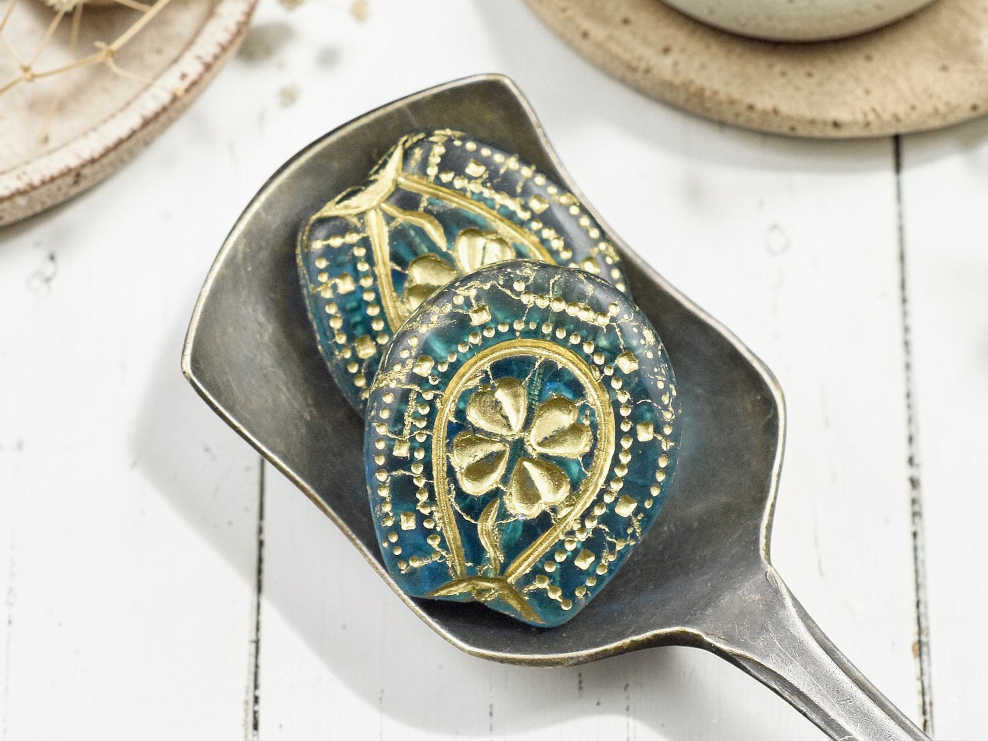 21x18mm Bronze Washed Blue Aqua Lucky Horseshoe Beads