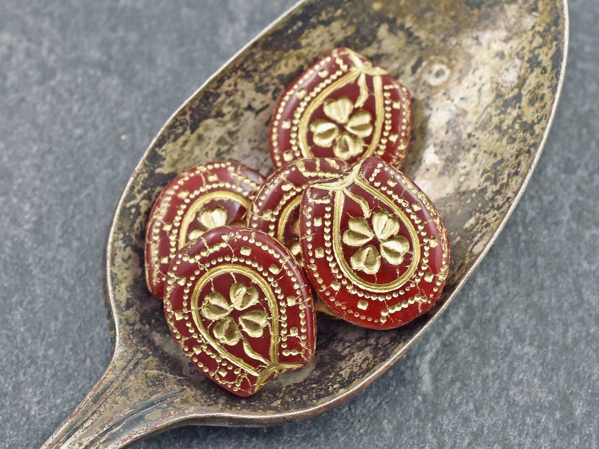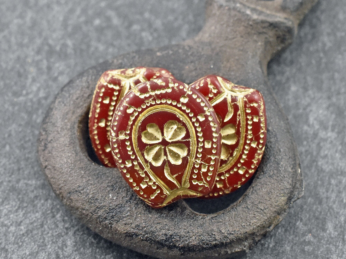 21x18mm Bronze Washed Translucent Dark Red Lucky Horseshoe Beads