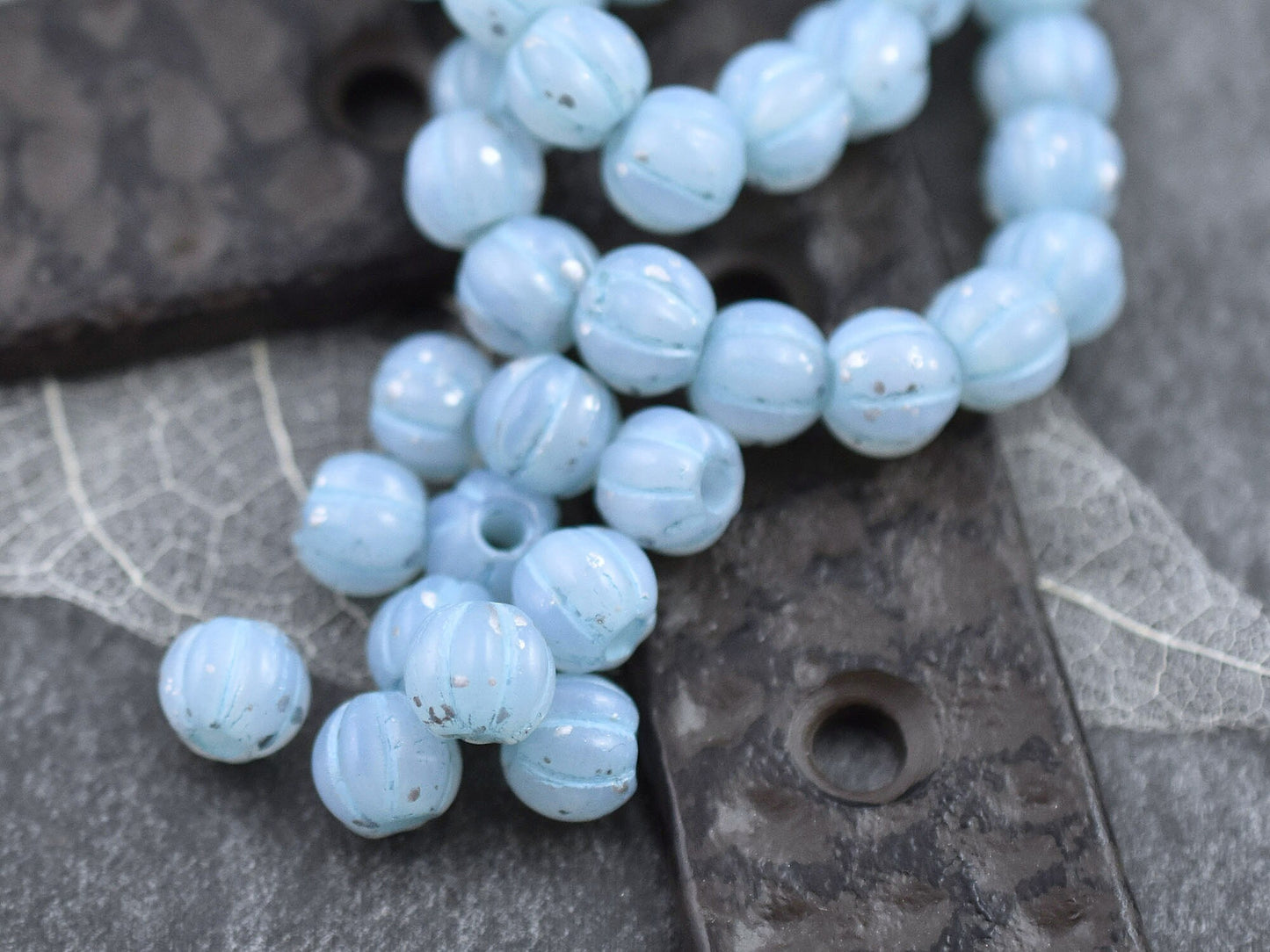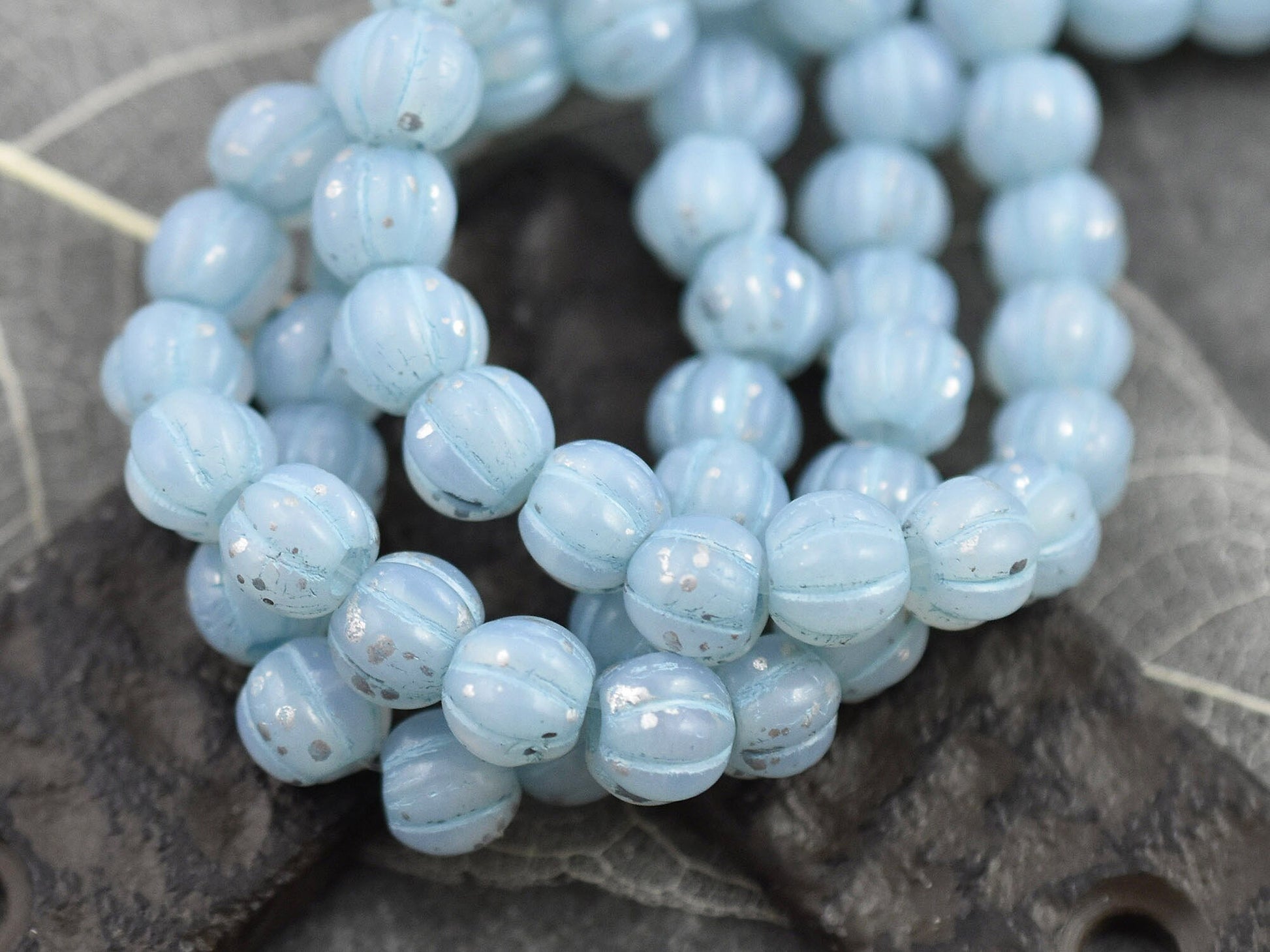 Silver & Turquoise Washed Sky Blue Opaline Large Hole Melon Beads -- Choose Your Size