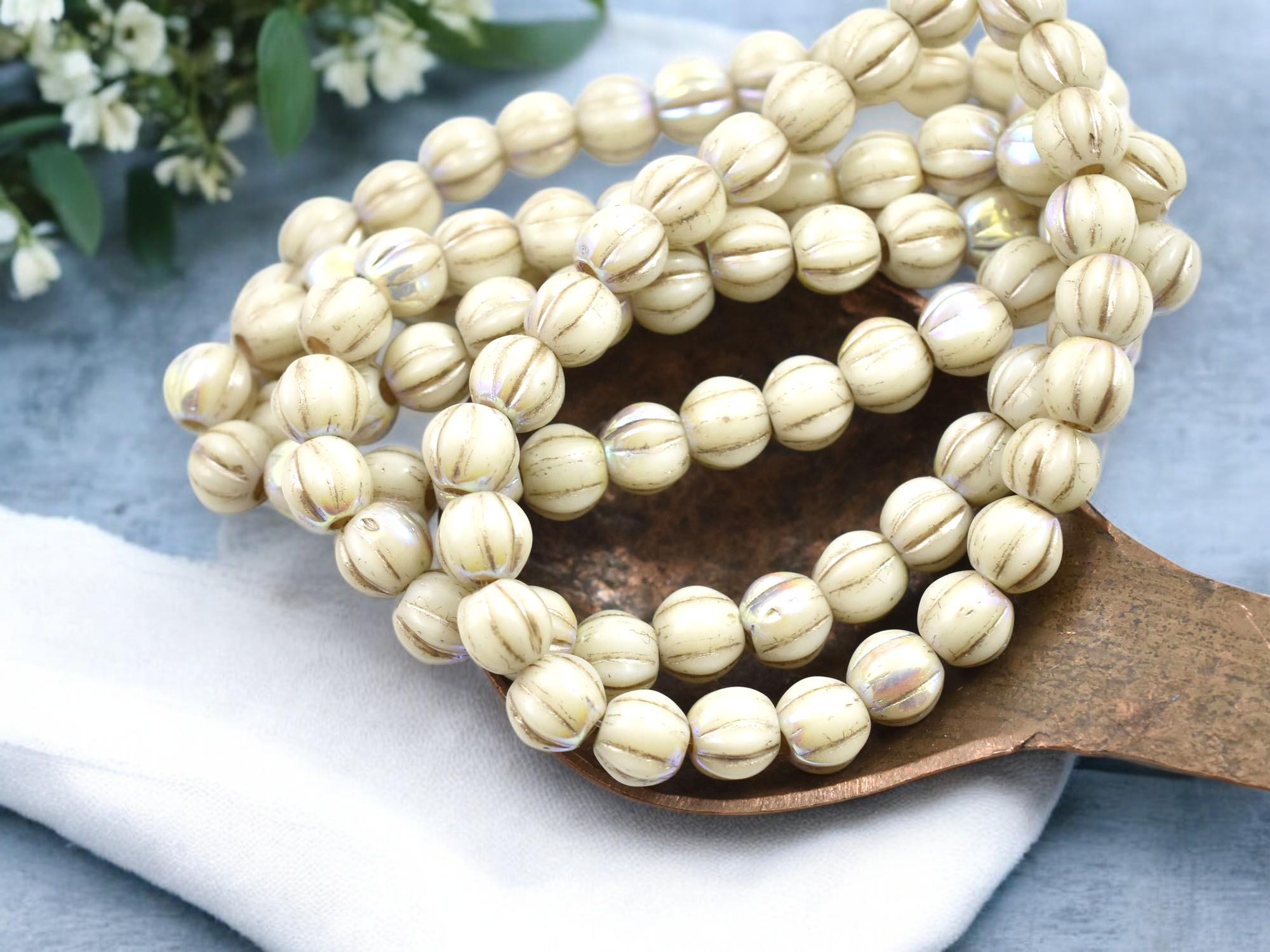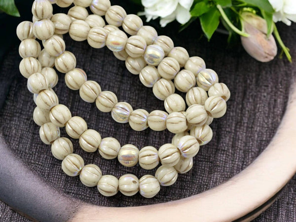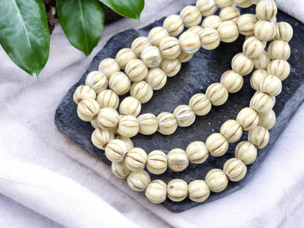 *25* 6mm Platinum Washed Opaque Ivory AB Large Hole Melon Beads