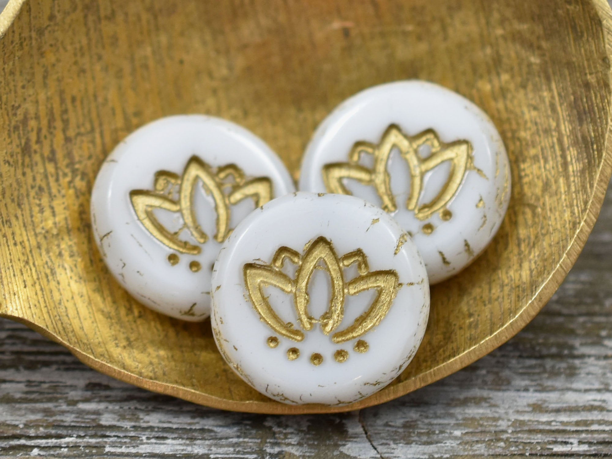 ♥ Type/Shape: Czech pressed glass coin with lotus flower design (on both sides)