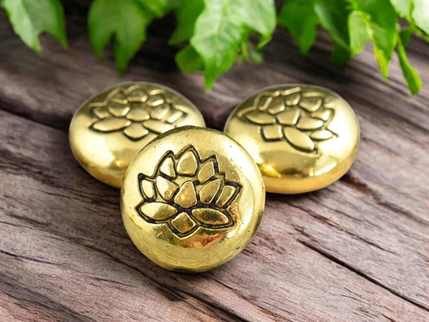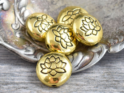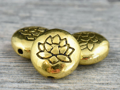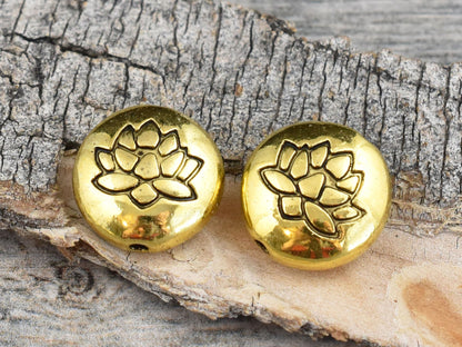 *10* 14mm Antique Gold Lotus Flower Design Coin Beads