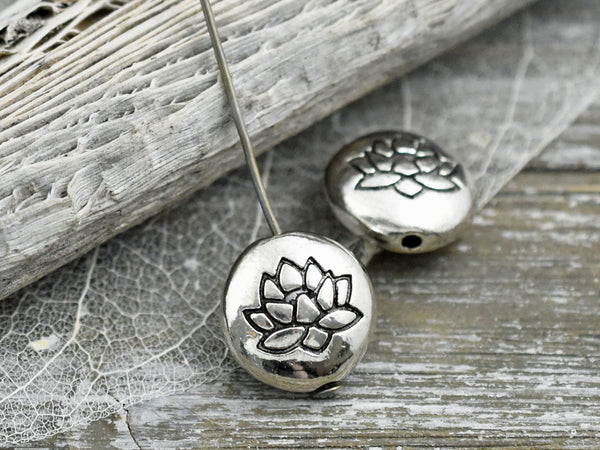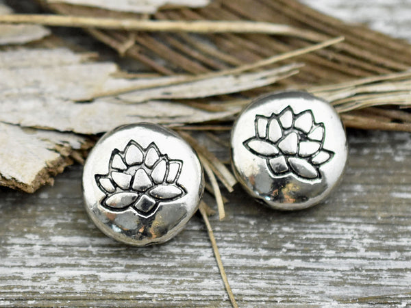 *6* 14mm Antique Silver Lotus Flower Design Coin Beads