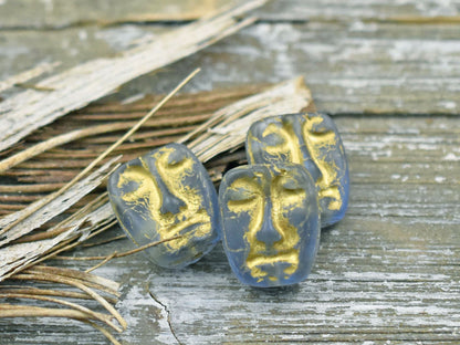 *6* 13x11mm Bronze Washed Matte Montana Blue Tribal Mask Beads