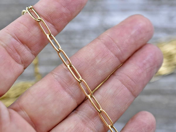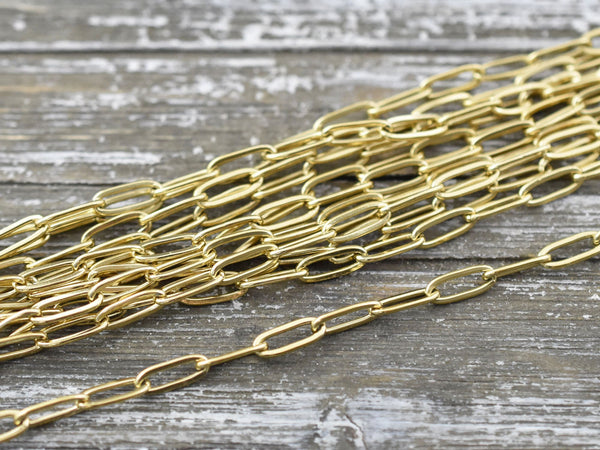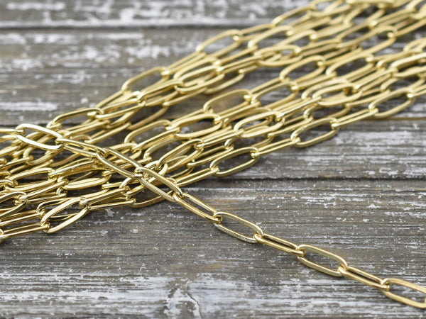10x4mm 18k Gold Plated Ion Plated 304 Stainless Steel Paperclip Chain -- Sold by the foot