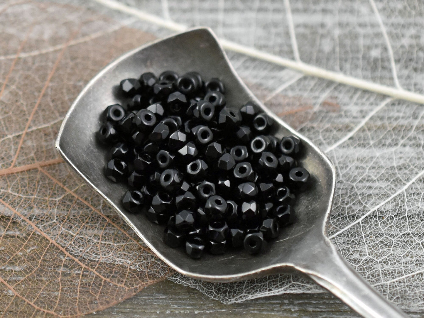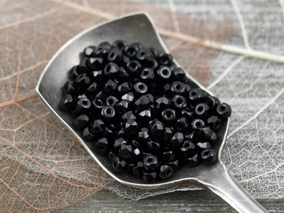 6g 2x3mm Jet Black Faceted Fire Polished Micro Spacer Beads