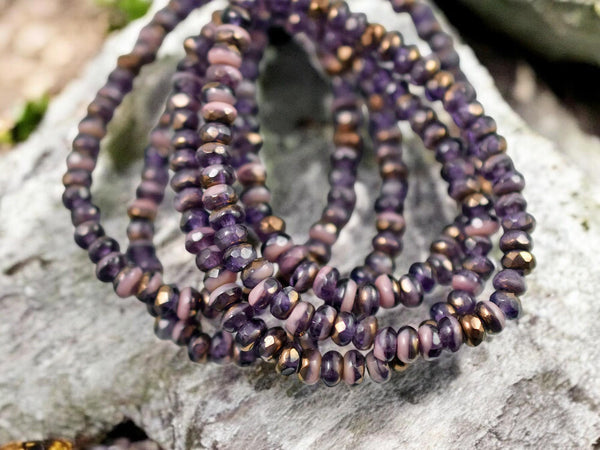 *50* 2x3mm Bronze Washed Blended Pink & Tanzanite Faceted Micro Spacer Beads