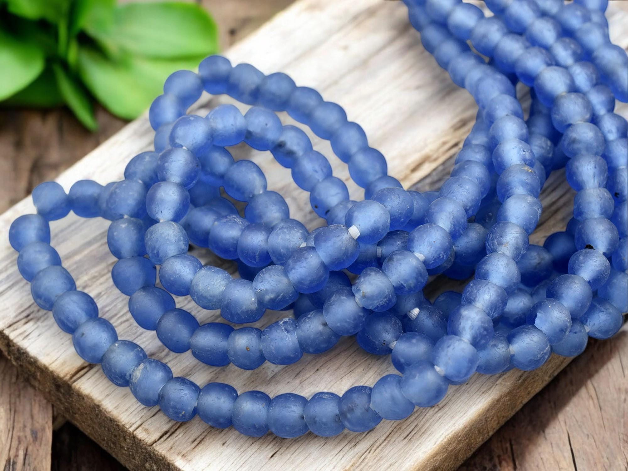 7-9mm Matte Blue African Recycled Glass Beads (18" Strand)
