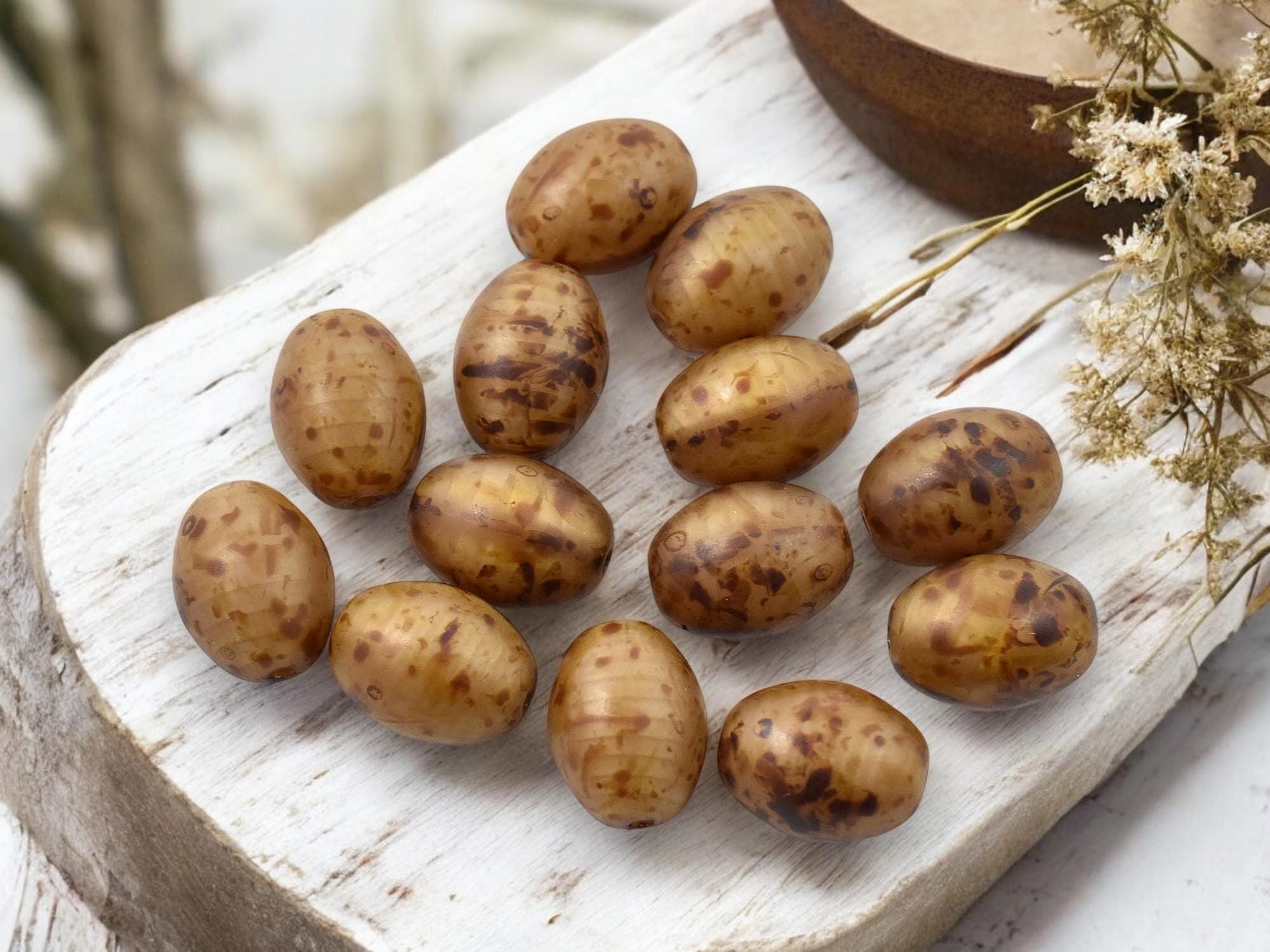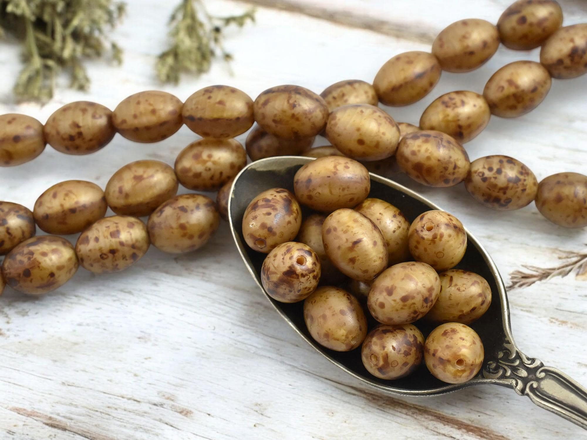 *10* 9x12mm Satin Matte Beige Travertine Oval Rice Beads