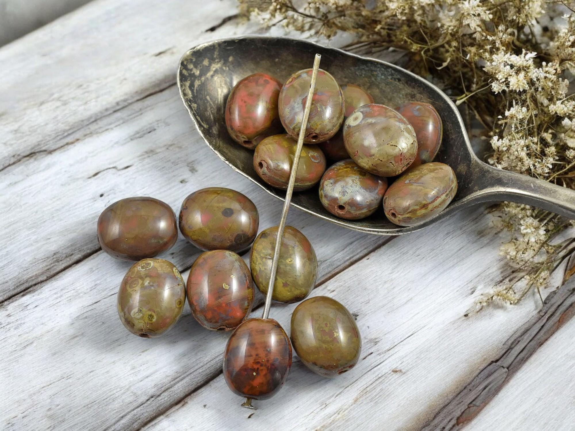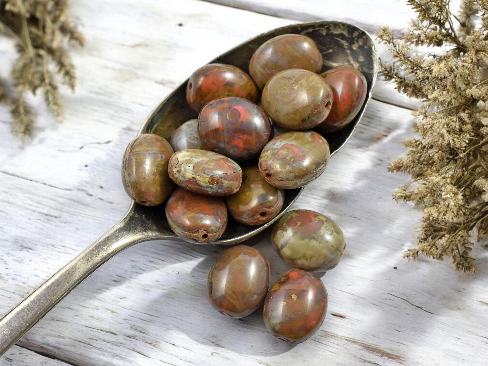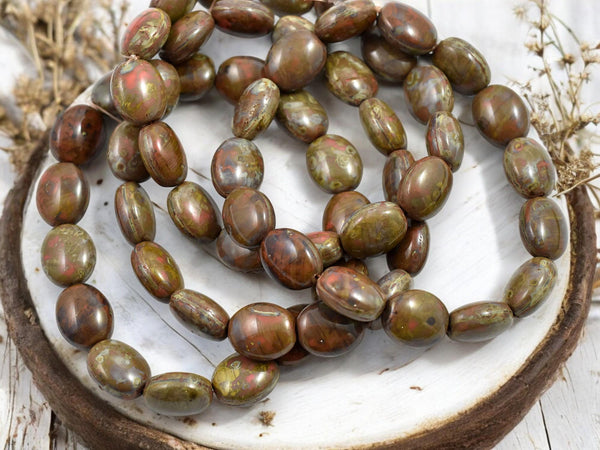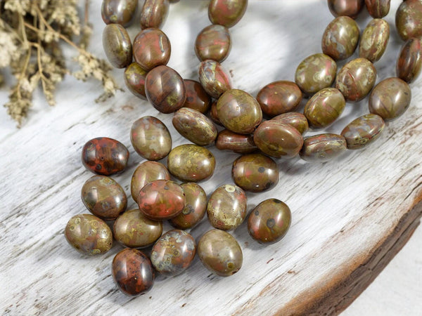*15* 10x12mm Opaque Burnt Orange Travertine Oval Lentil Beads