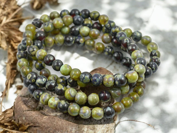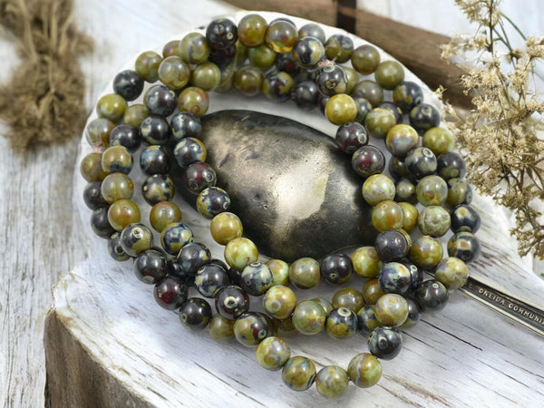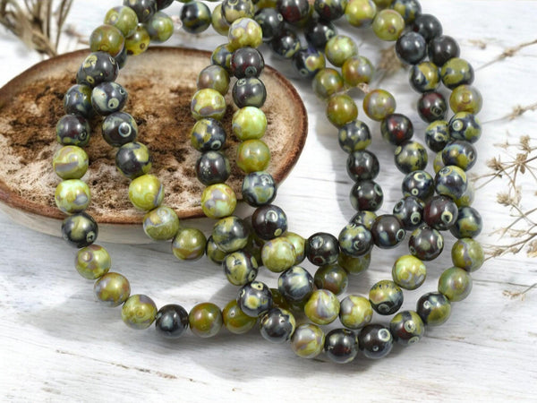 *30* 6mm Turquoise Amber Picasso Round Druk Beads