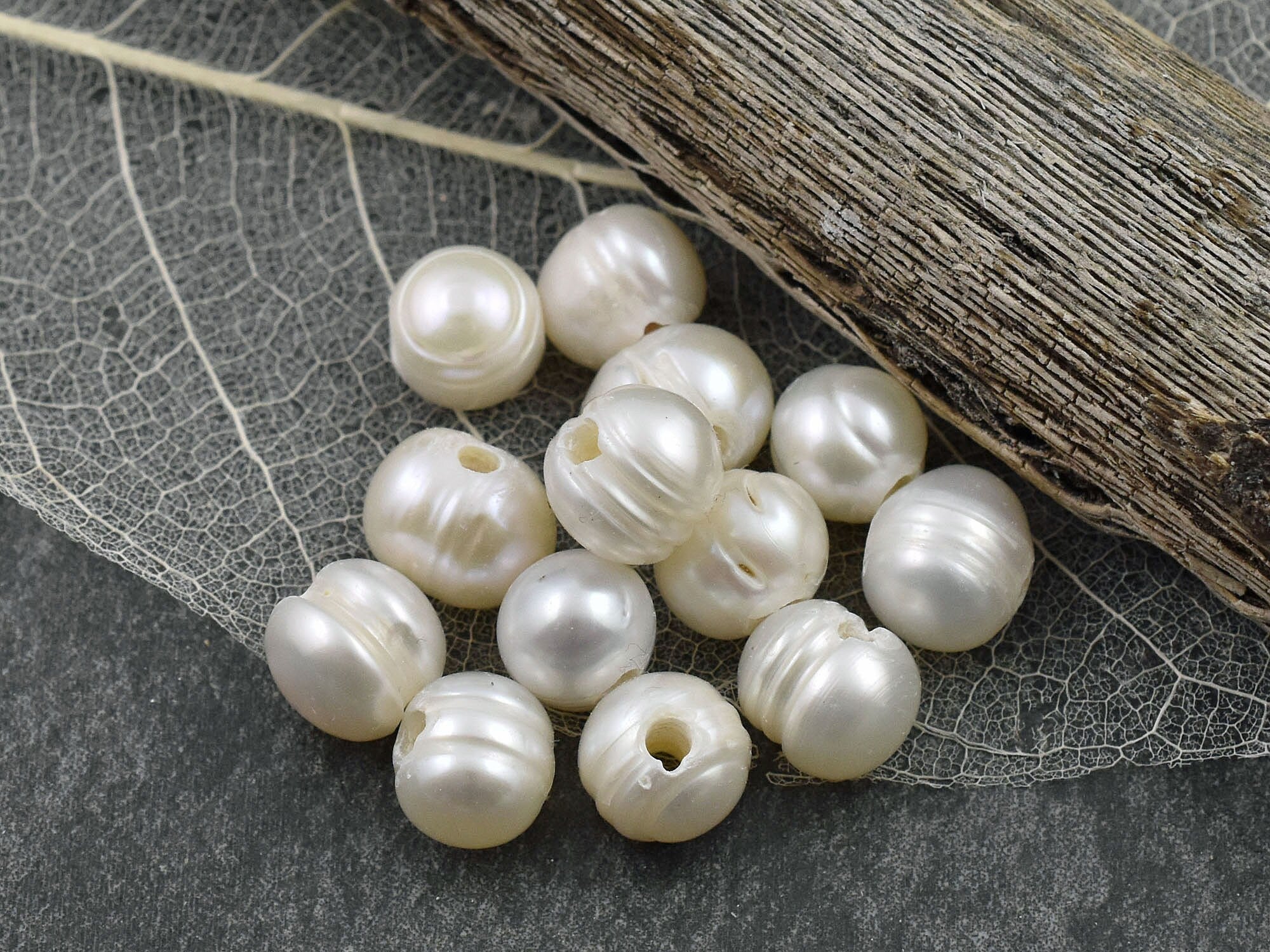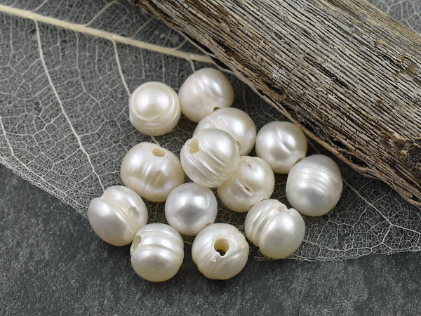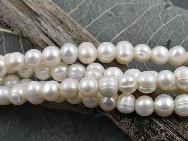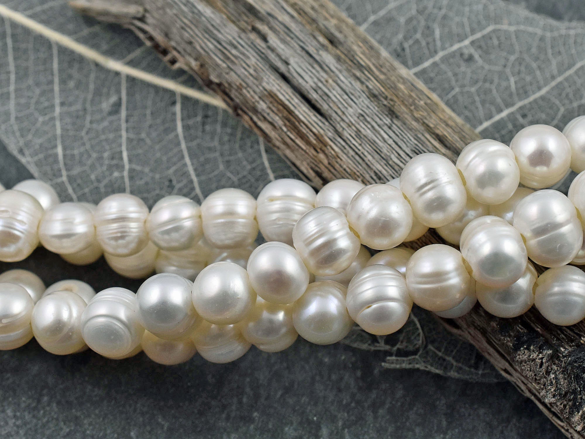 9mm Cream Large Hole Fresh Water Potatoe Pearls (8" Strand)