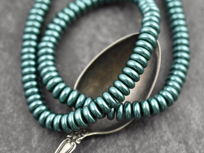 8x3mm Teal Celestial Pearl Rondelle Beads (16" Strand)