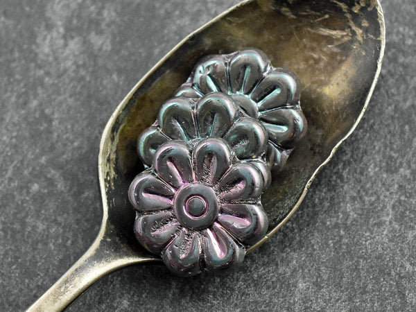 *6* 18mm Metallic Purple Iris Daisy Flower Beads
