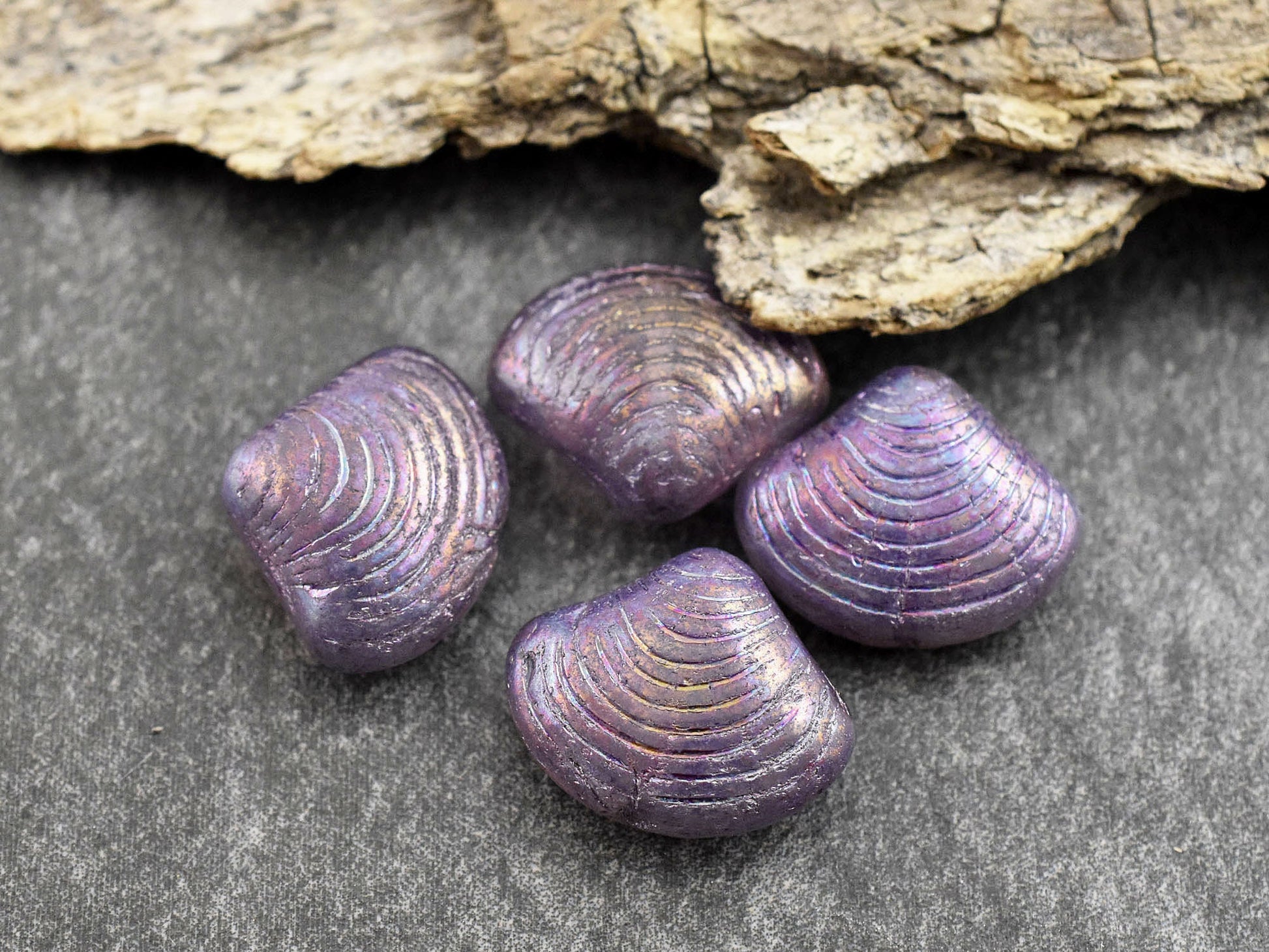 *8* 15x18mm Metallic Purple Washed Thistle Sea Shell Beads
