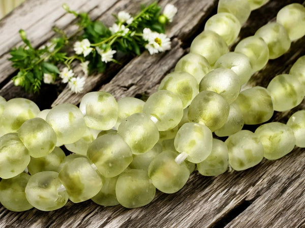 13-15mm Blended Olive Crystal African Recycled Glass Beads (10" Strand)
