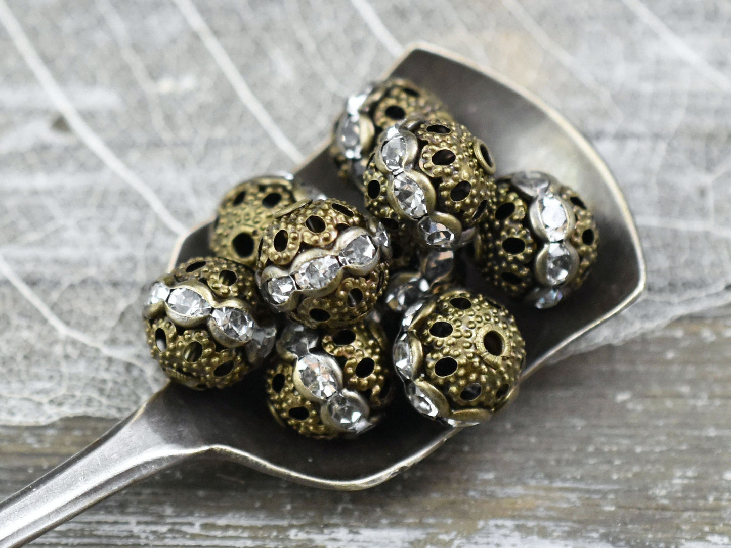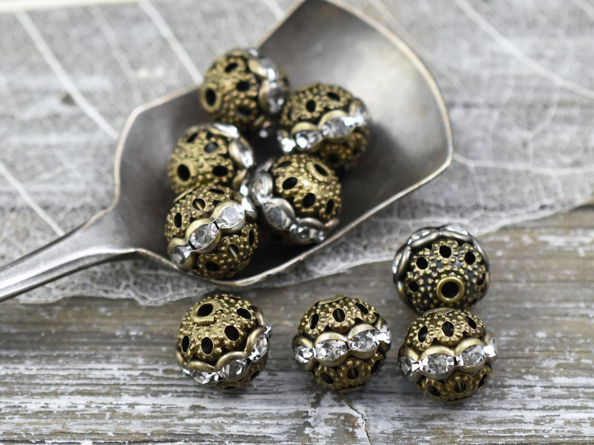 Type/Shape: Filigree round beads with crystal rhinestones