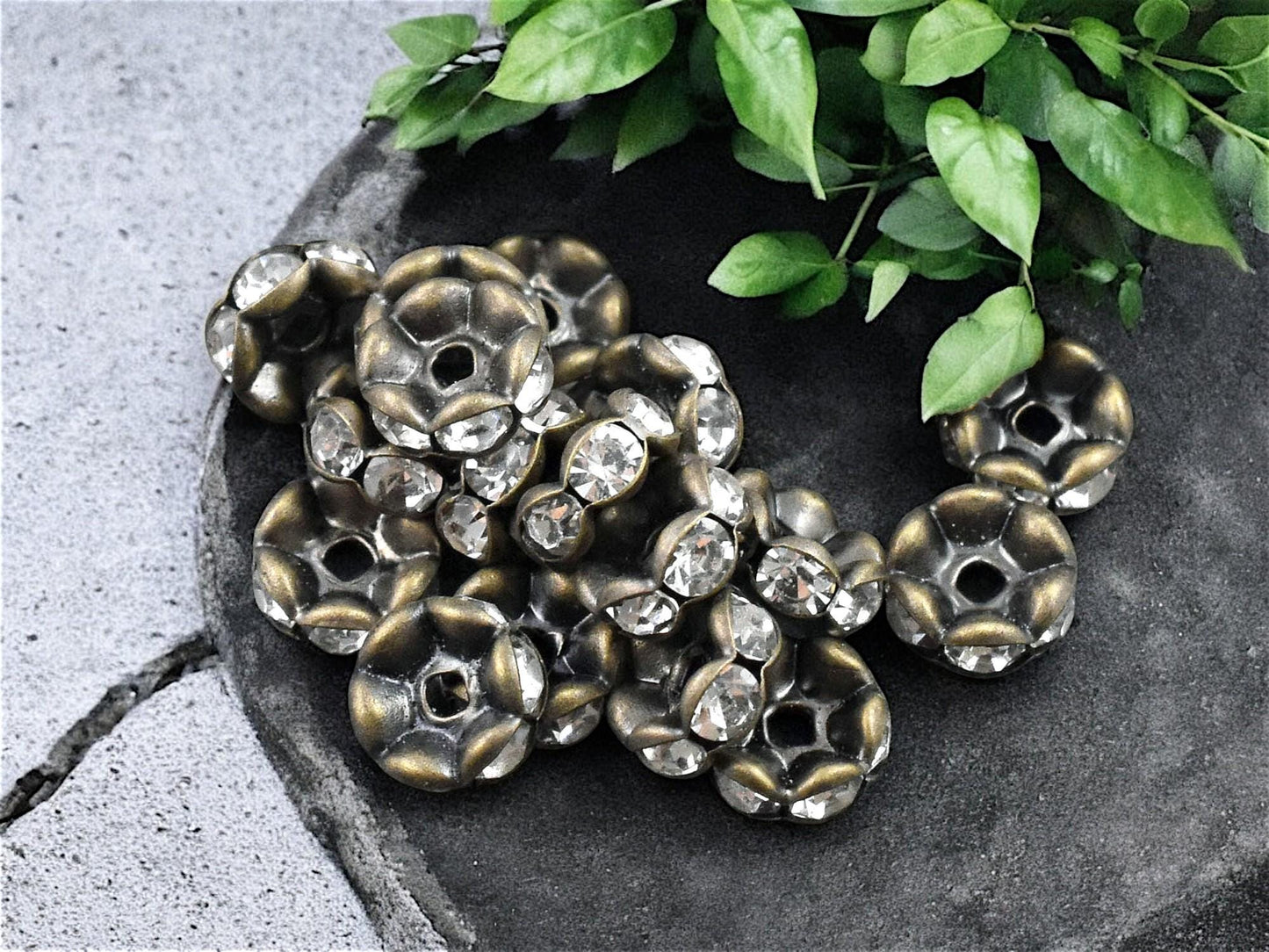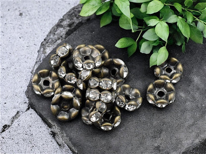 Antique Bronze w/ Crystal Rhinestone Wavy Edge Rondelle Spacer Beads