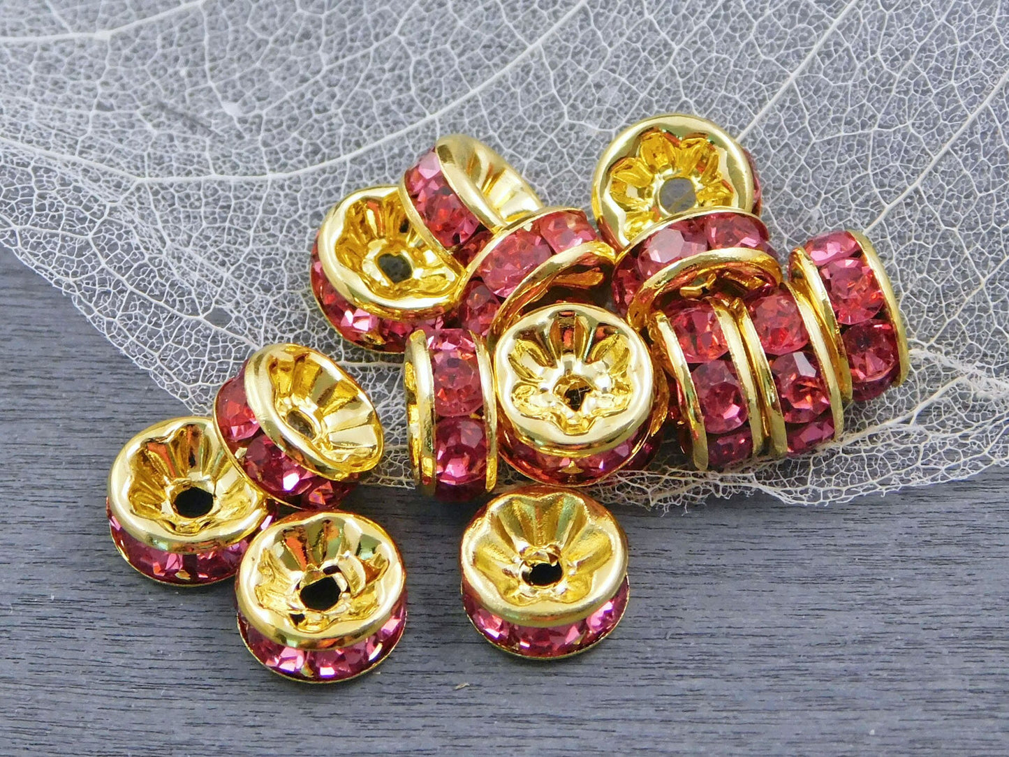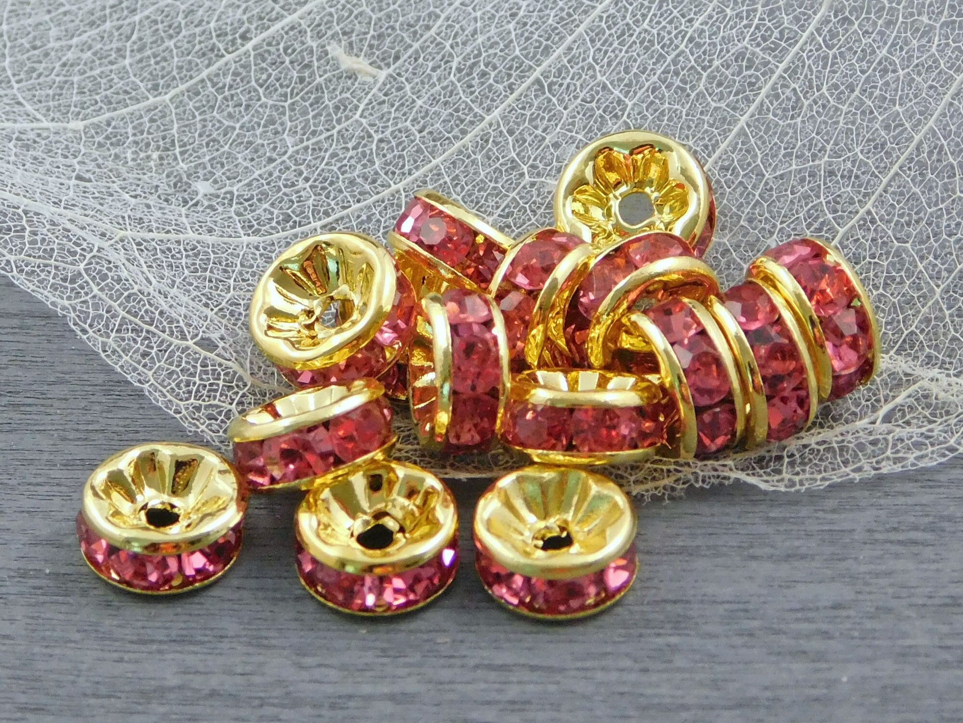 Gold w/Light Rose Rhinestone Rondelle Spacer Beads