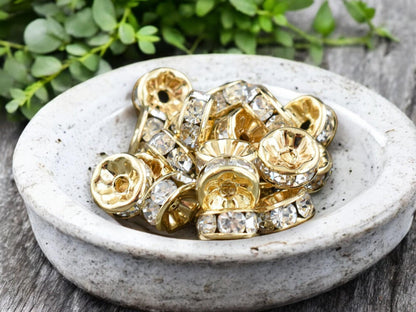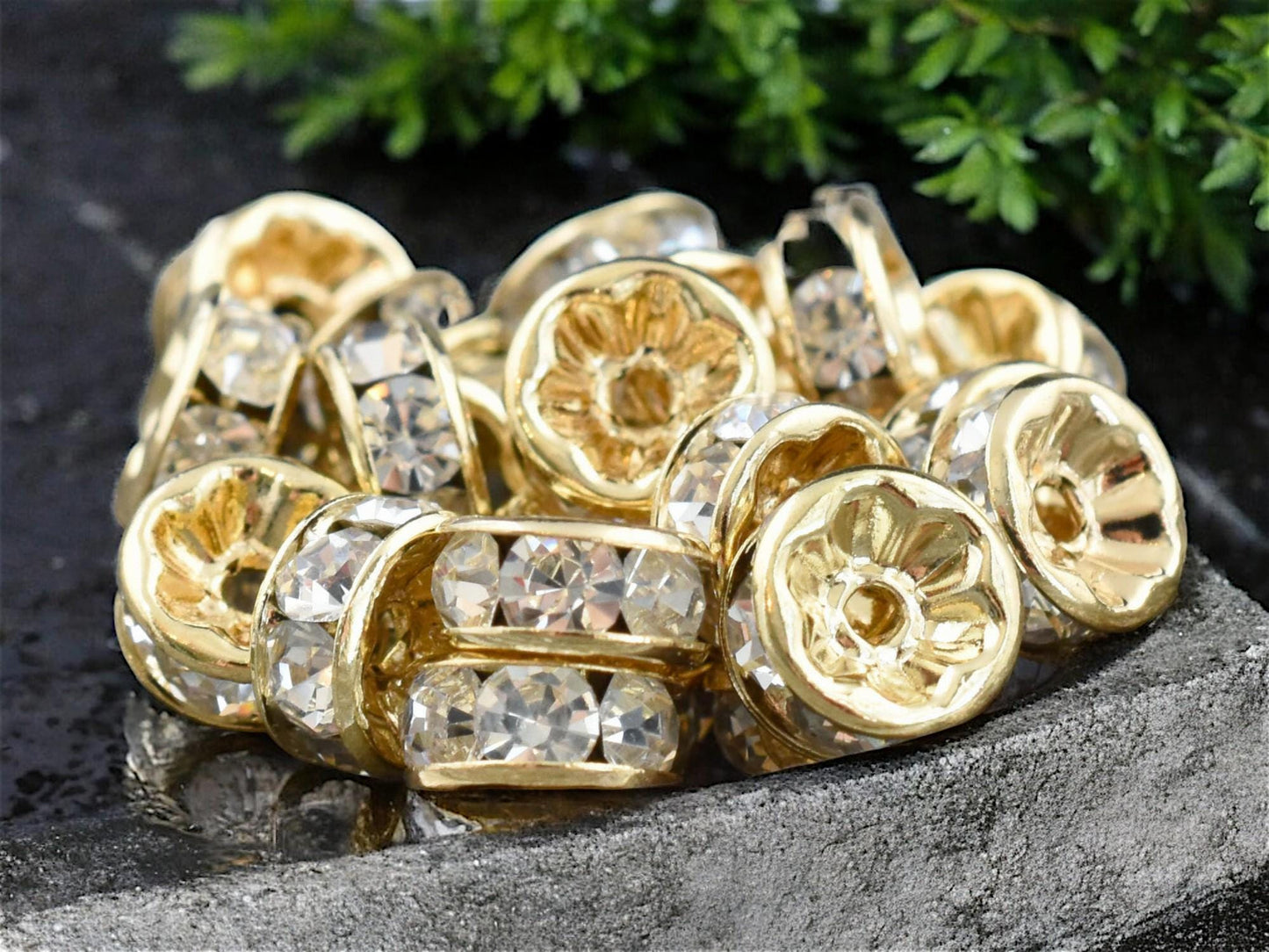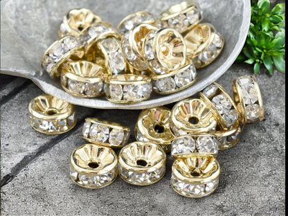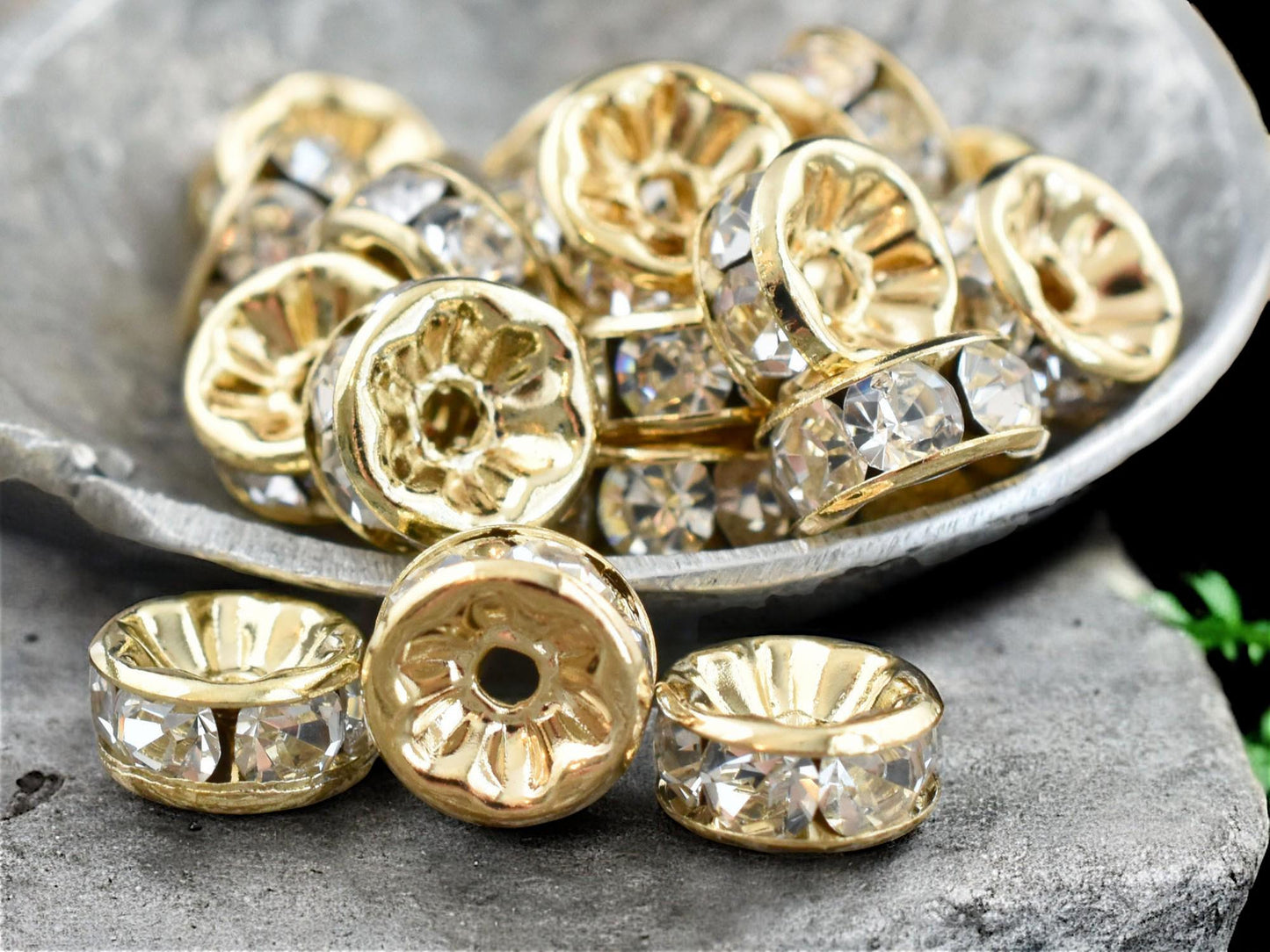 Light Rose Gold Rhinestone Rondelle Spacer Beads
