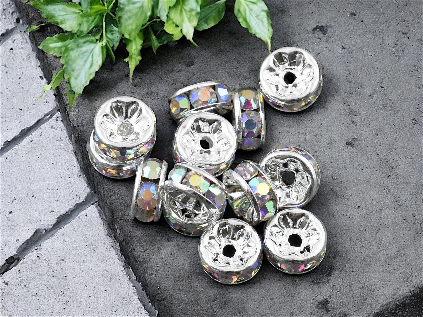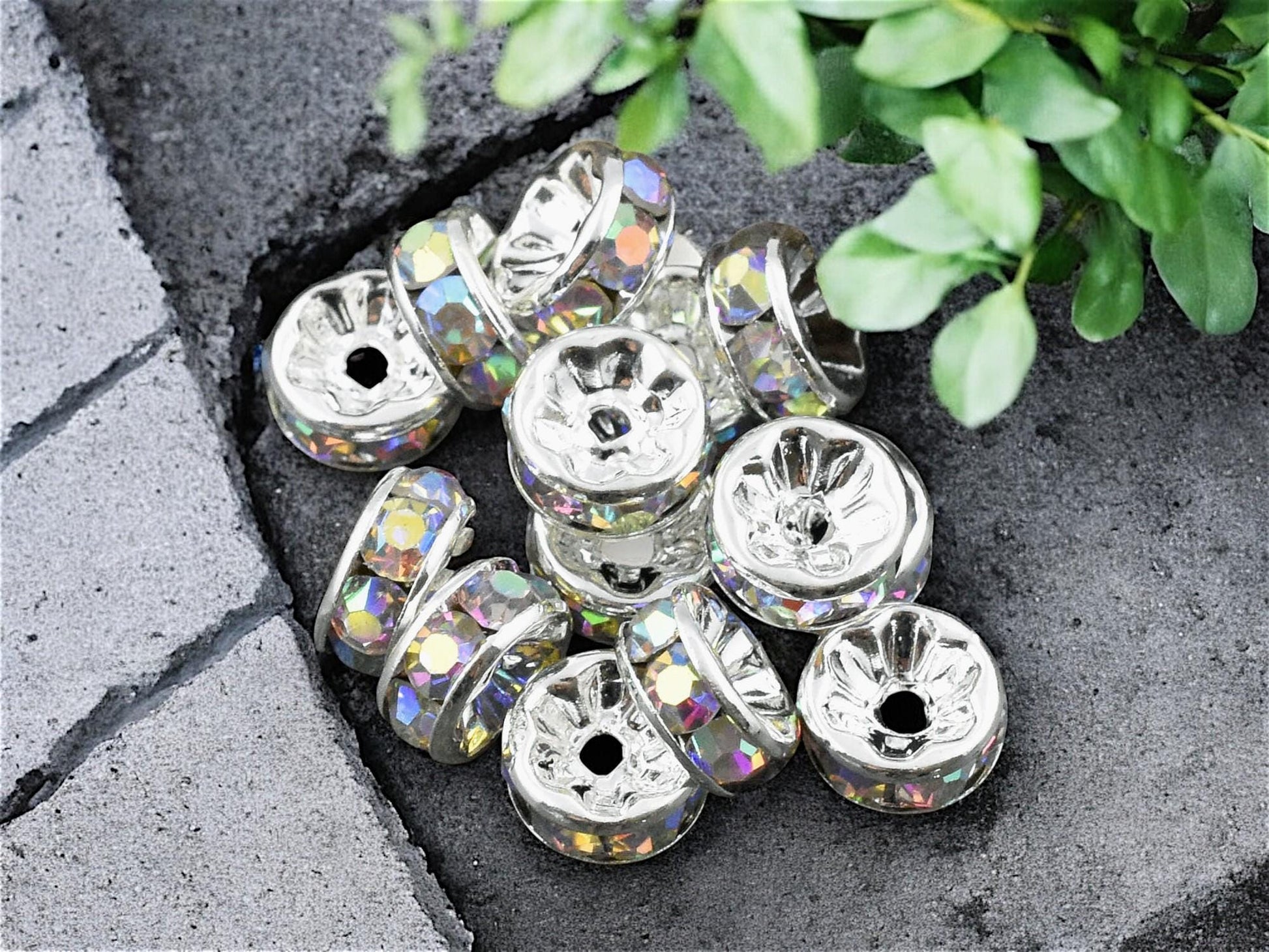Silver w/ Crystal AB Rhinestone Rondelle Spacer Beads