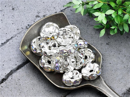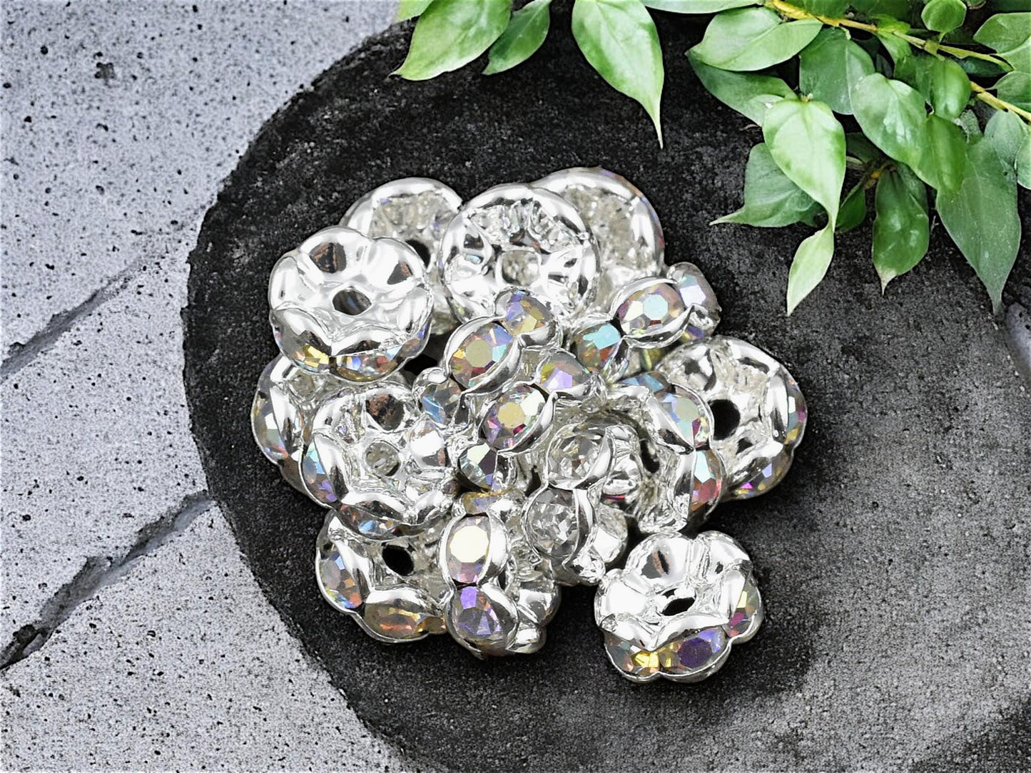 Silver w/ Crystal AB Rhinestone Wavy Edge Rondelle Spacer Beads