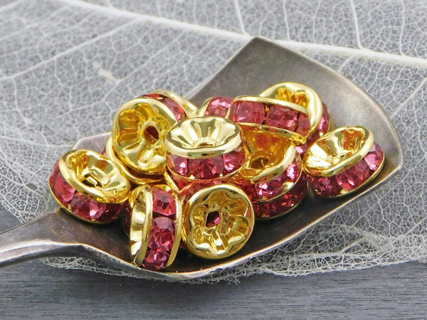Gold w/Light Rose Rhinestone Rondelle Spacer Beads