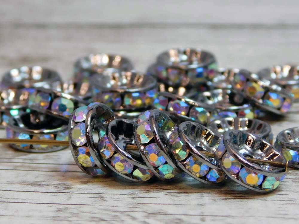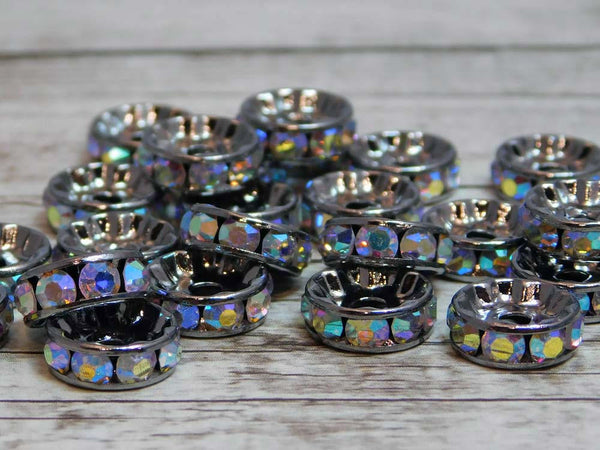 Gunmetal Crystal AB Straight Edge Rhinestone Rondelle Beads