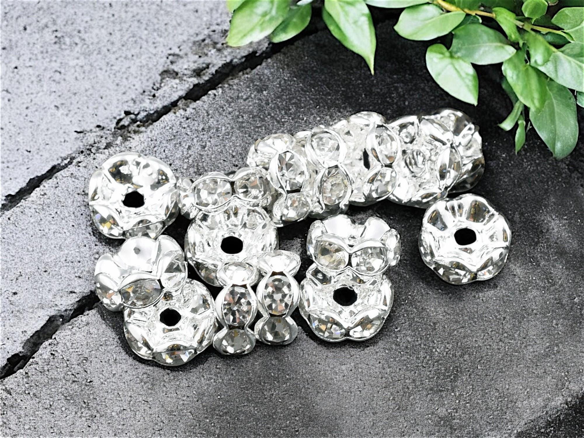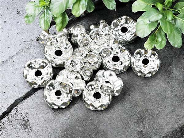 Silver w/ Crystal Rhinestone Wavy Edge Rondelle Spacer Beads