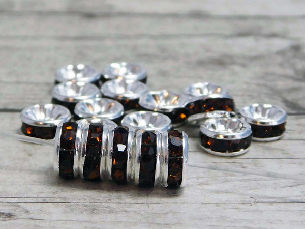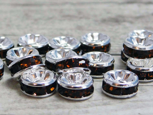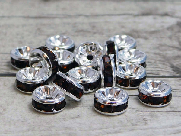 Silver w/Smokey Topaz Rhinestone Rondelle Spacer Beads