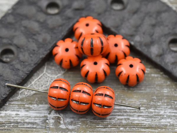 *10* 11x8mm Black Washed Opaque Orange Pumpkin Rondelle Beads