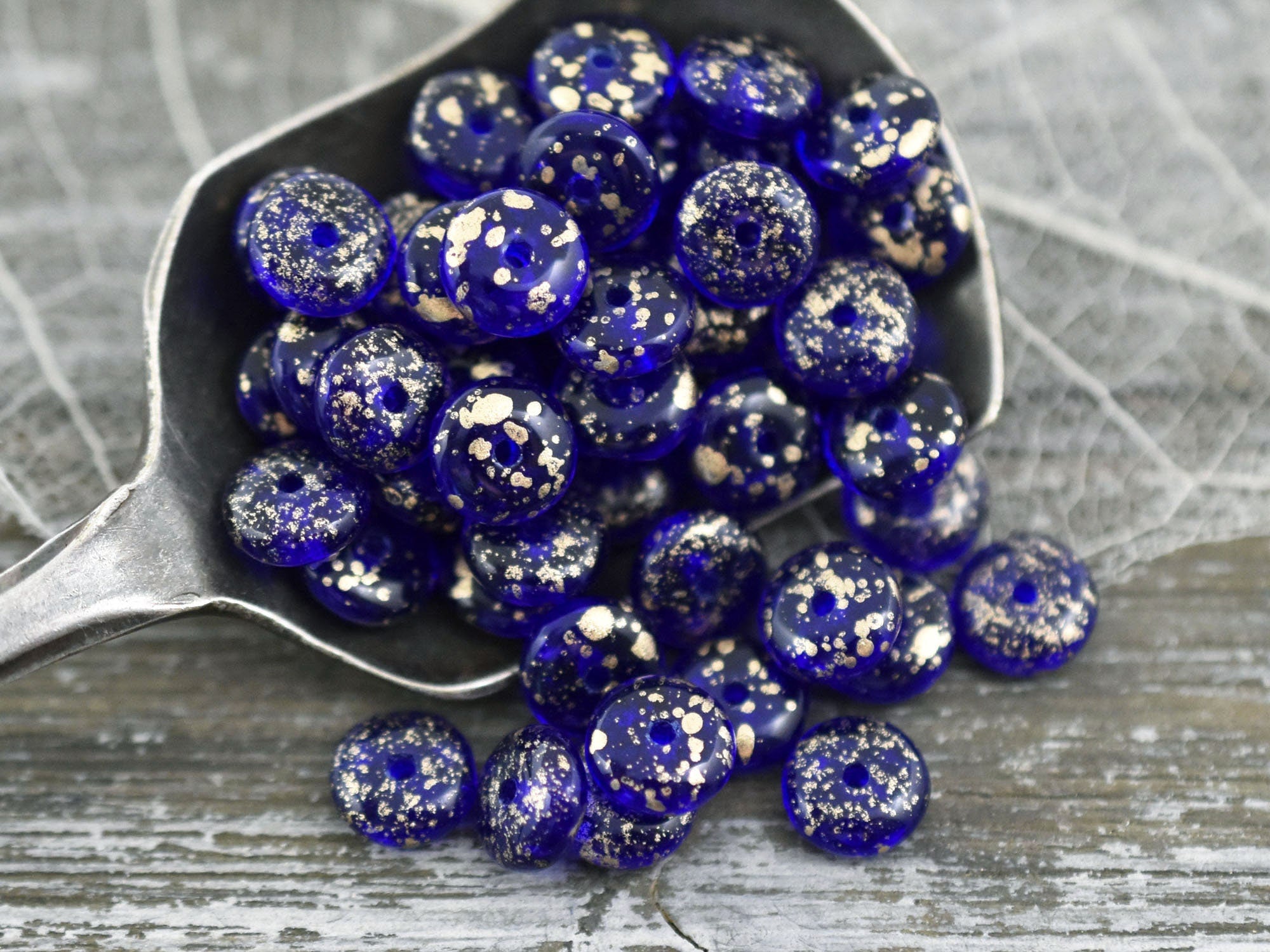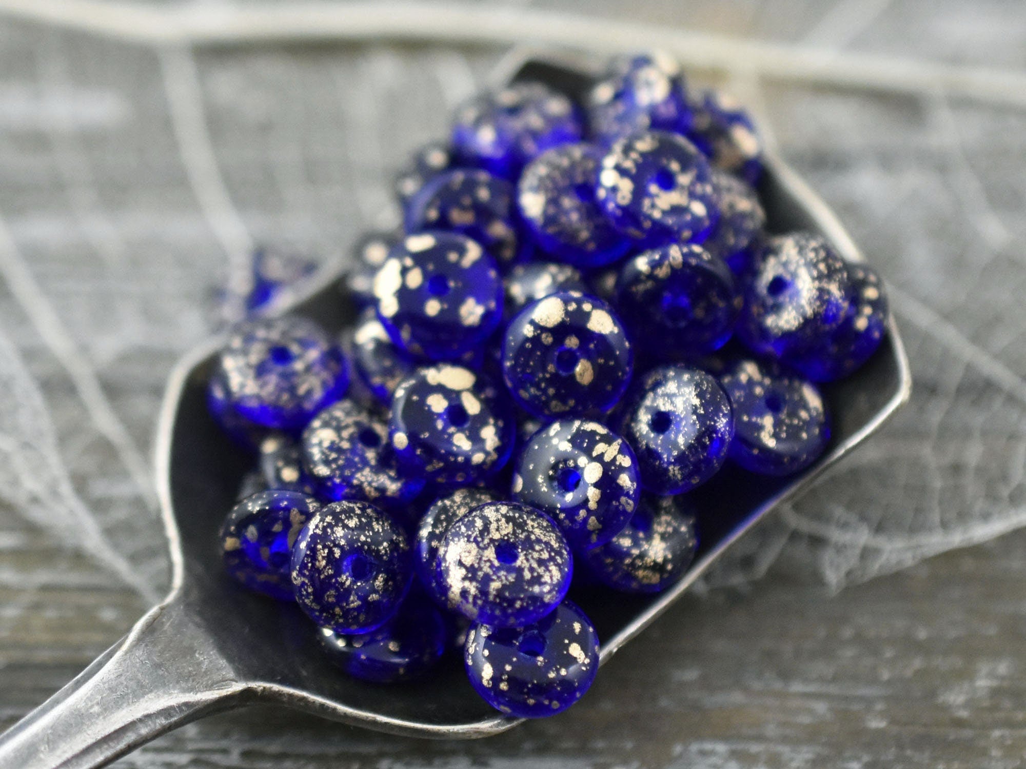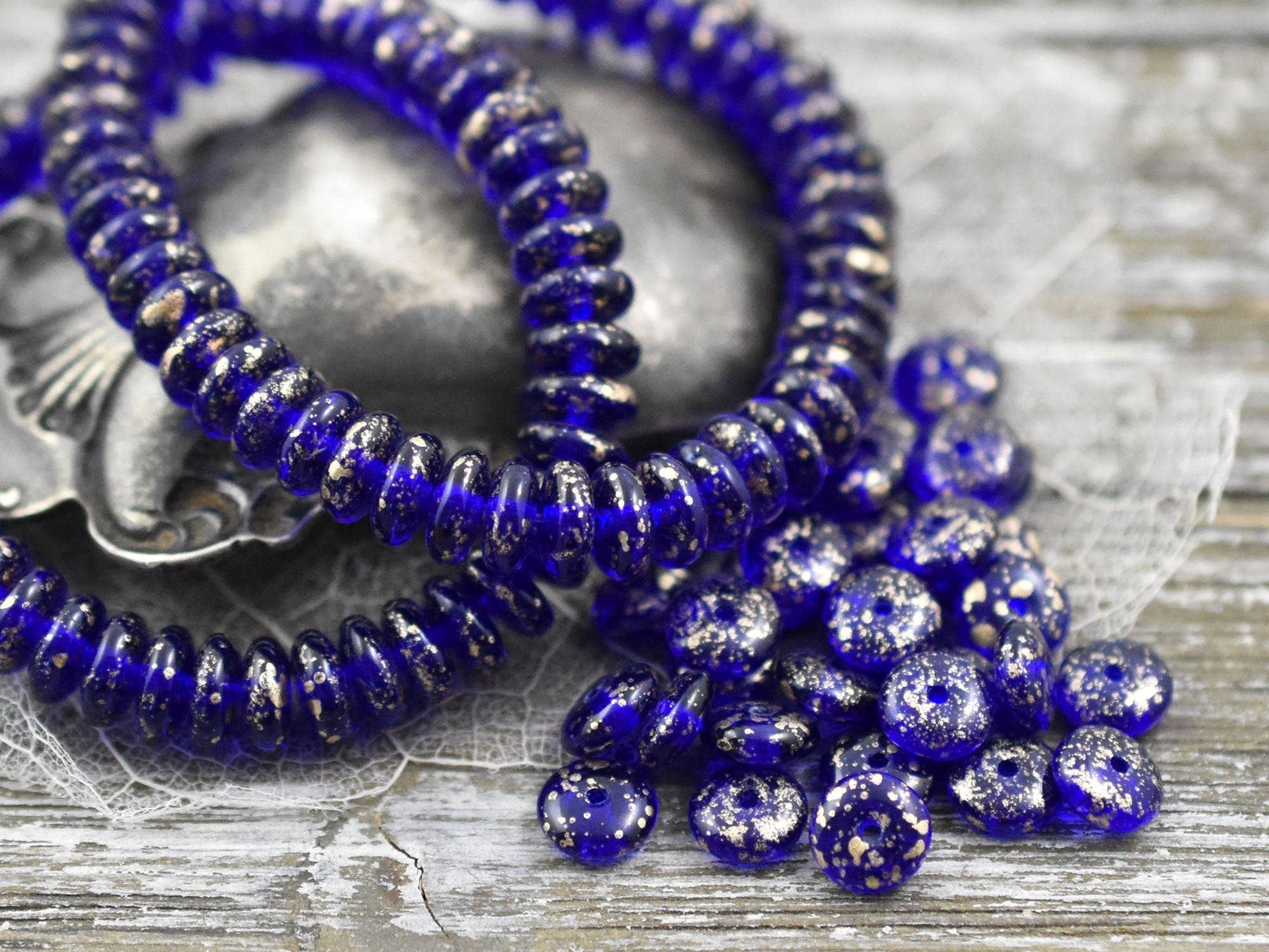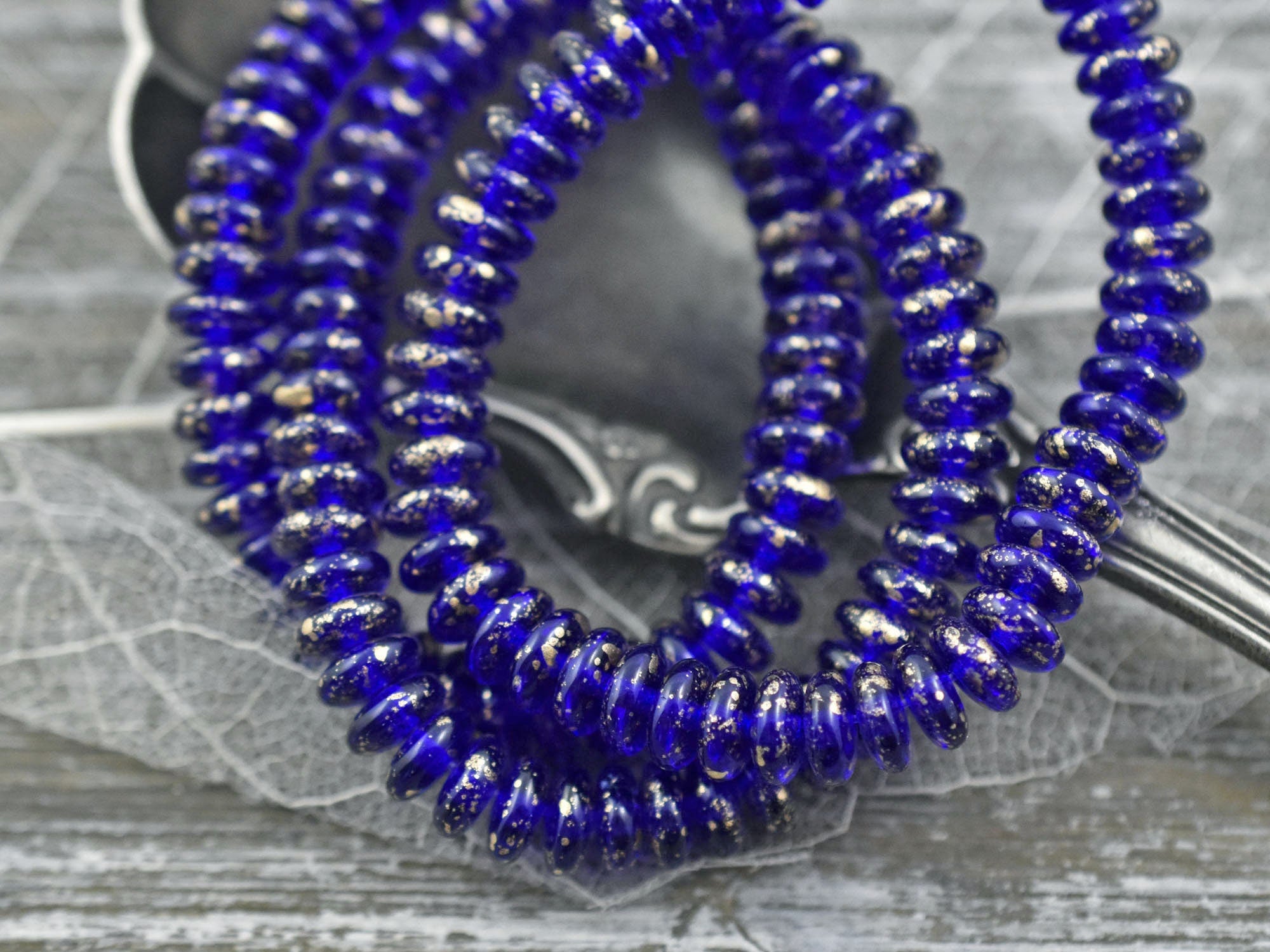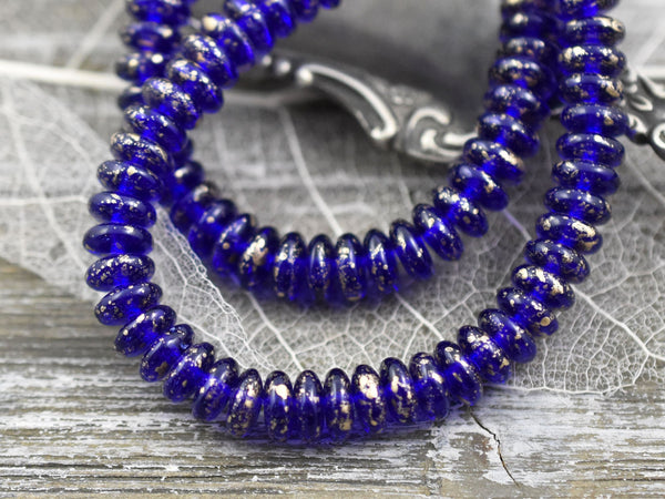 *50* 6x2mm Antique Gold Washed Cobalt Blue Smooth Rondelle Beads