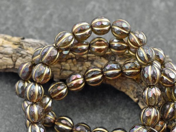 *20* 8mm Gold Washed Bronze Lustered Topaz Faceted Round Melon Beads
