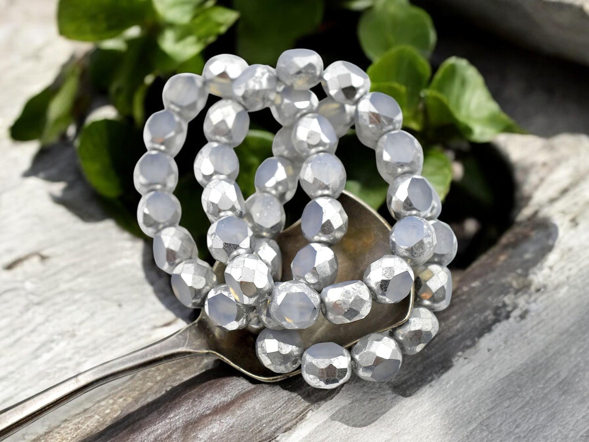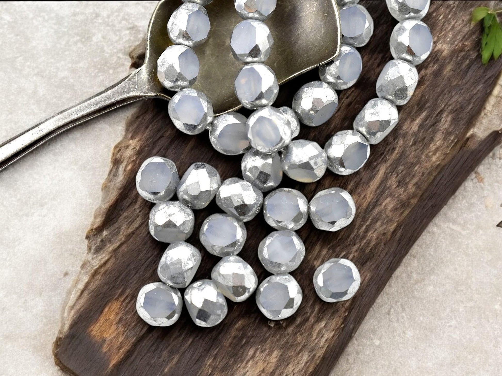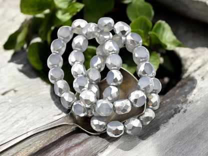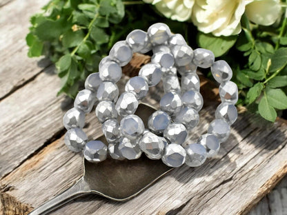 *15* 8mm Silver Washed Crystal Opaline 2 Cut Fire Polished Round Beads