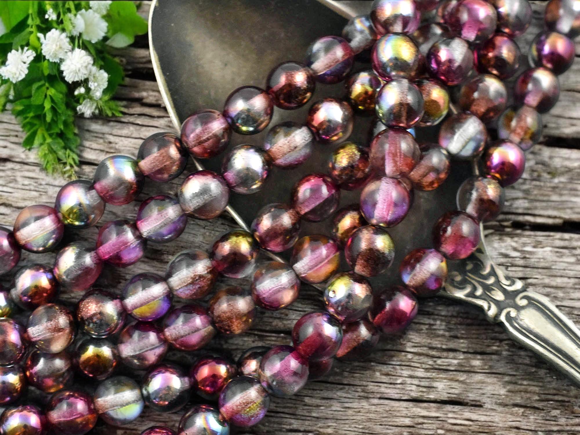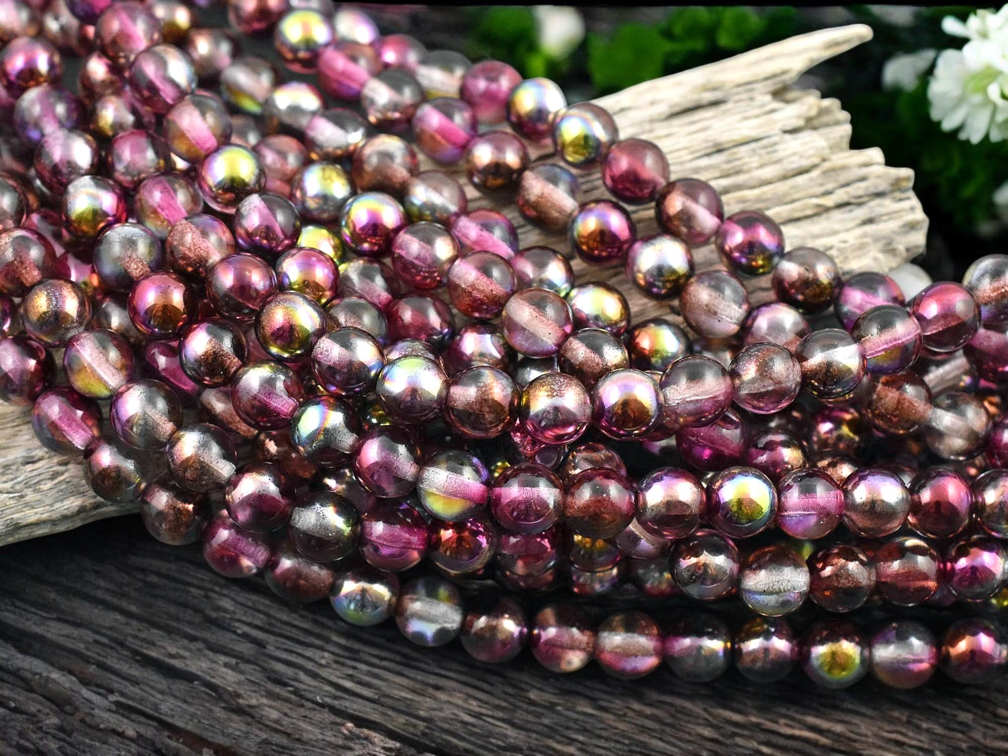 *25* 6mm Magic Raspberry Round Druk Beads