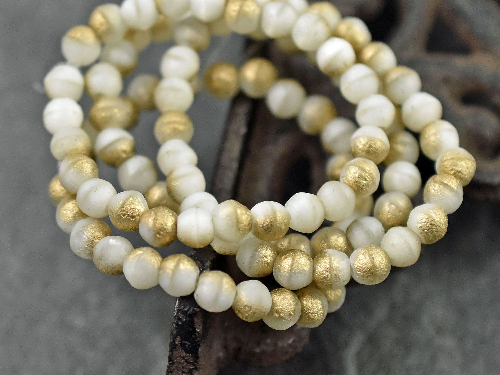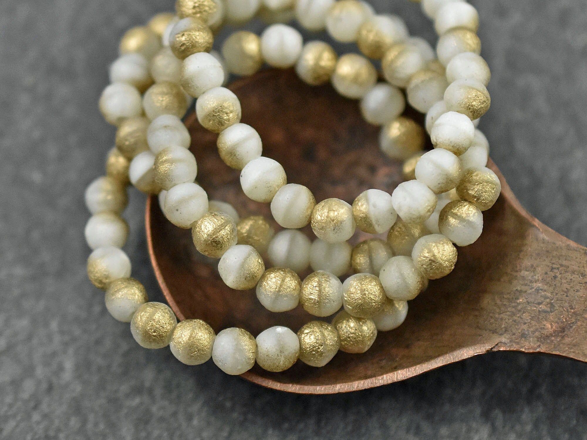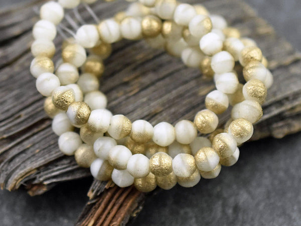 *50* 5mm Gold Washed White Silk Round Druk Beads