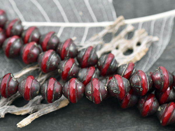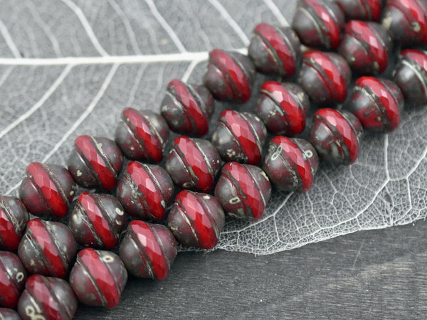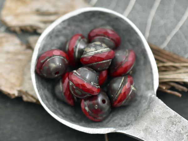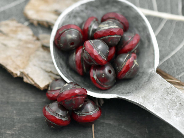*10* 9x11mm Red Opaline Picasso Saturn Beads