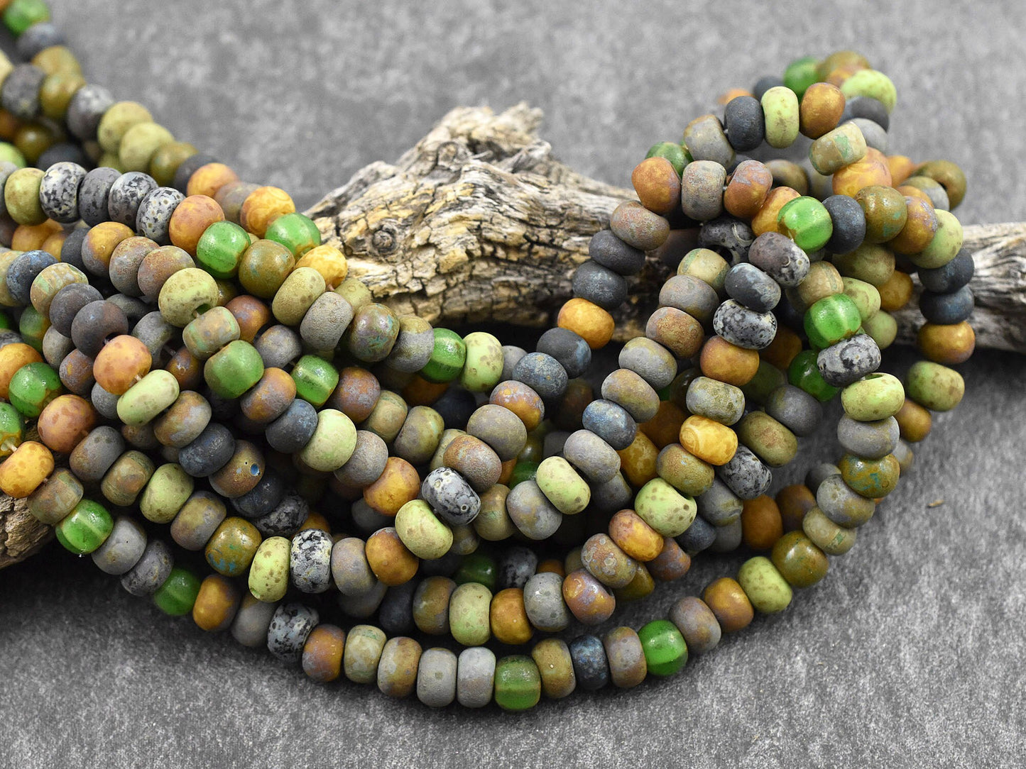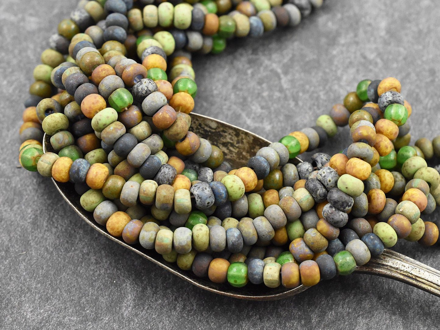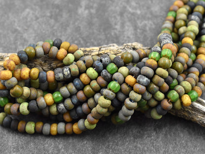 2/0 Aged Matte Medusa White Heart Striped Picasso Mix Czech Seed Beads (19" Strand)
