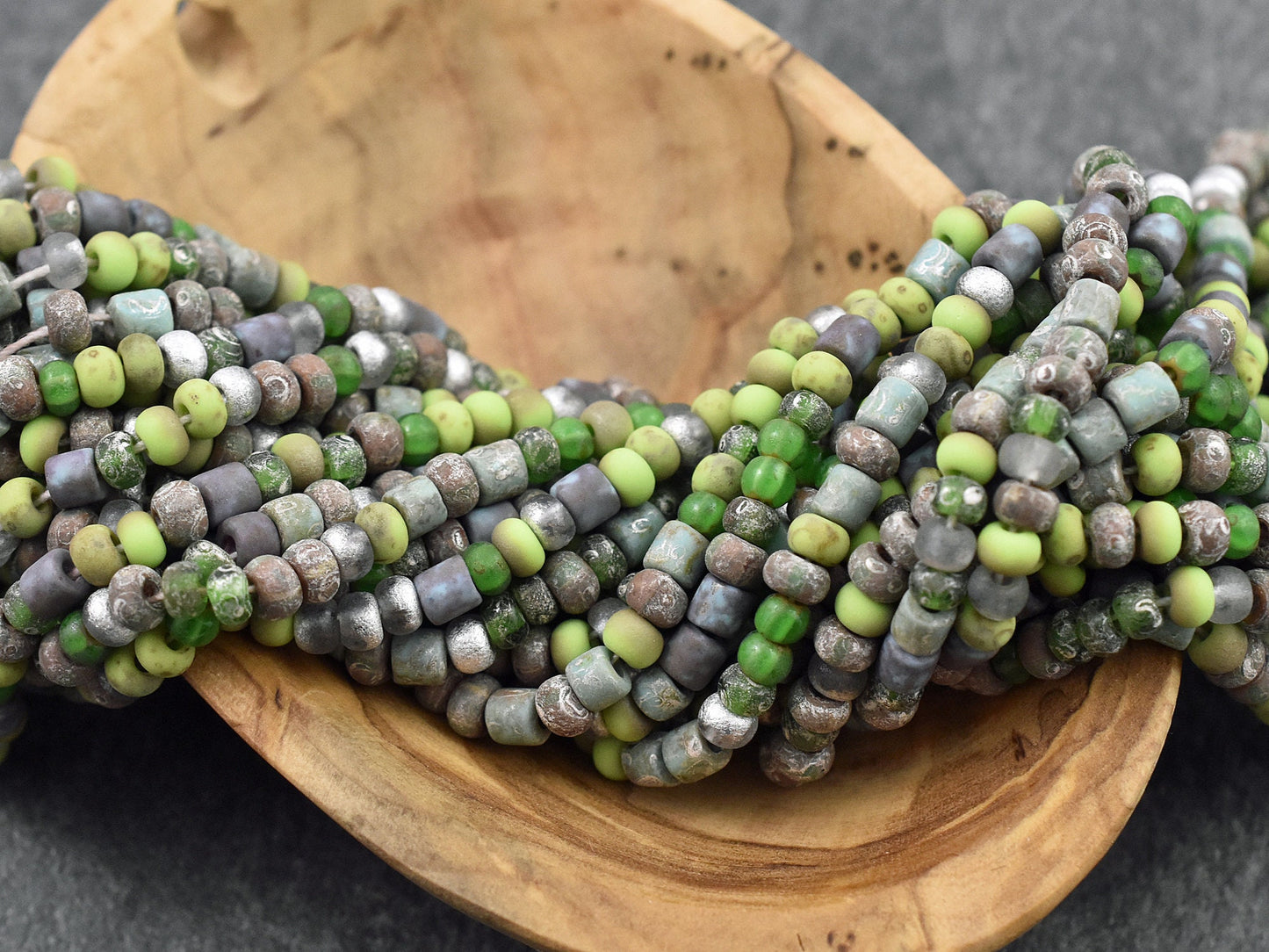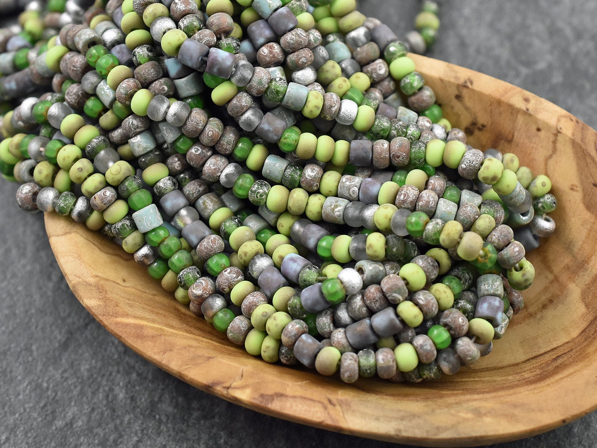 6/0 Aged Matte Green Envy Picasso Seed Bead Tube Mix (20" Strand)