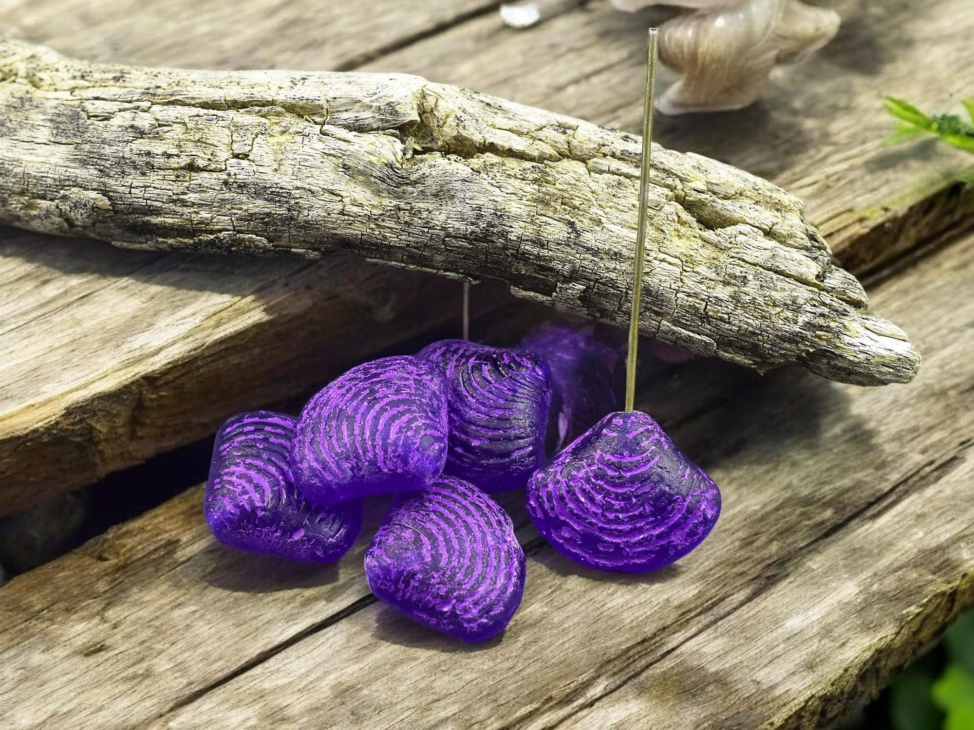 *8* 15x18mm Purple Washed Etched Sapphire Sea Shell Beads