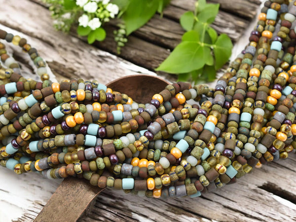 6/0 Aged Matte Gala Striped Picasso Mix Seed Beads (21" Strand)