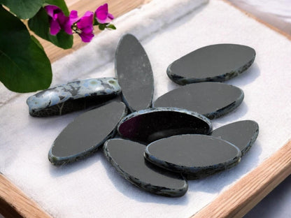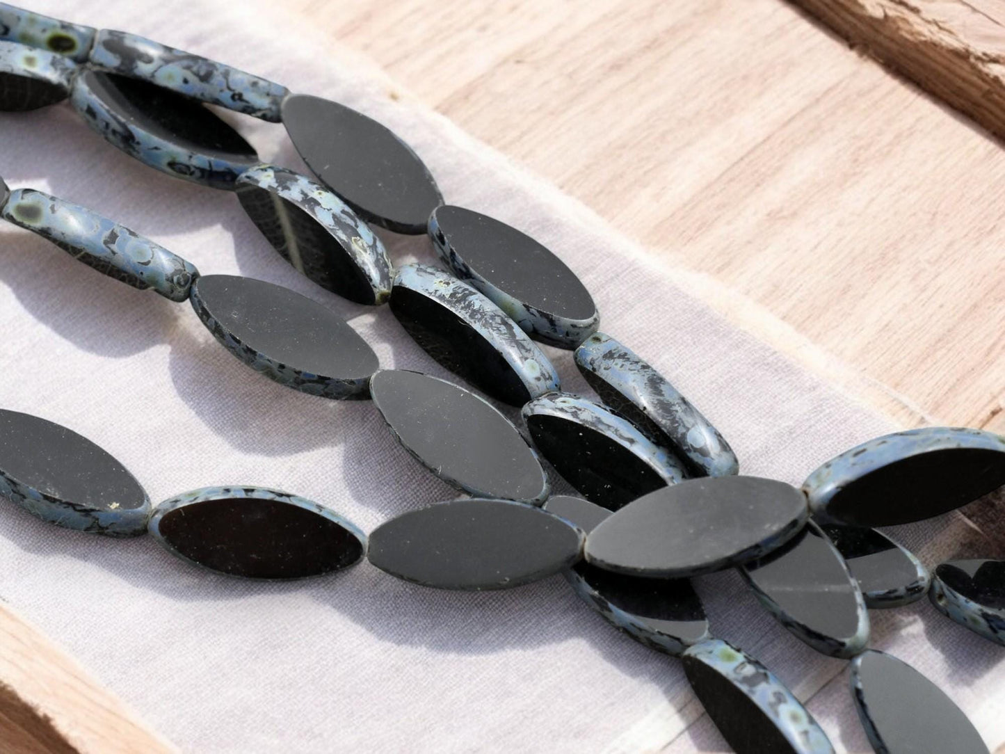 *9* 8x18mm Jet Picasso Table Cut Spindle Beads