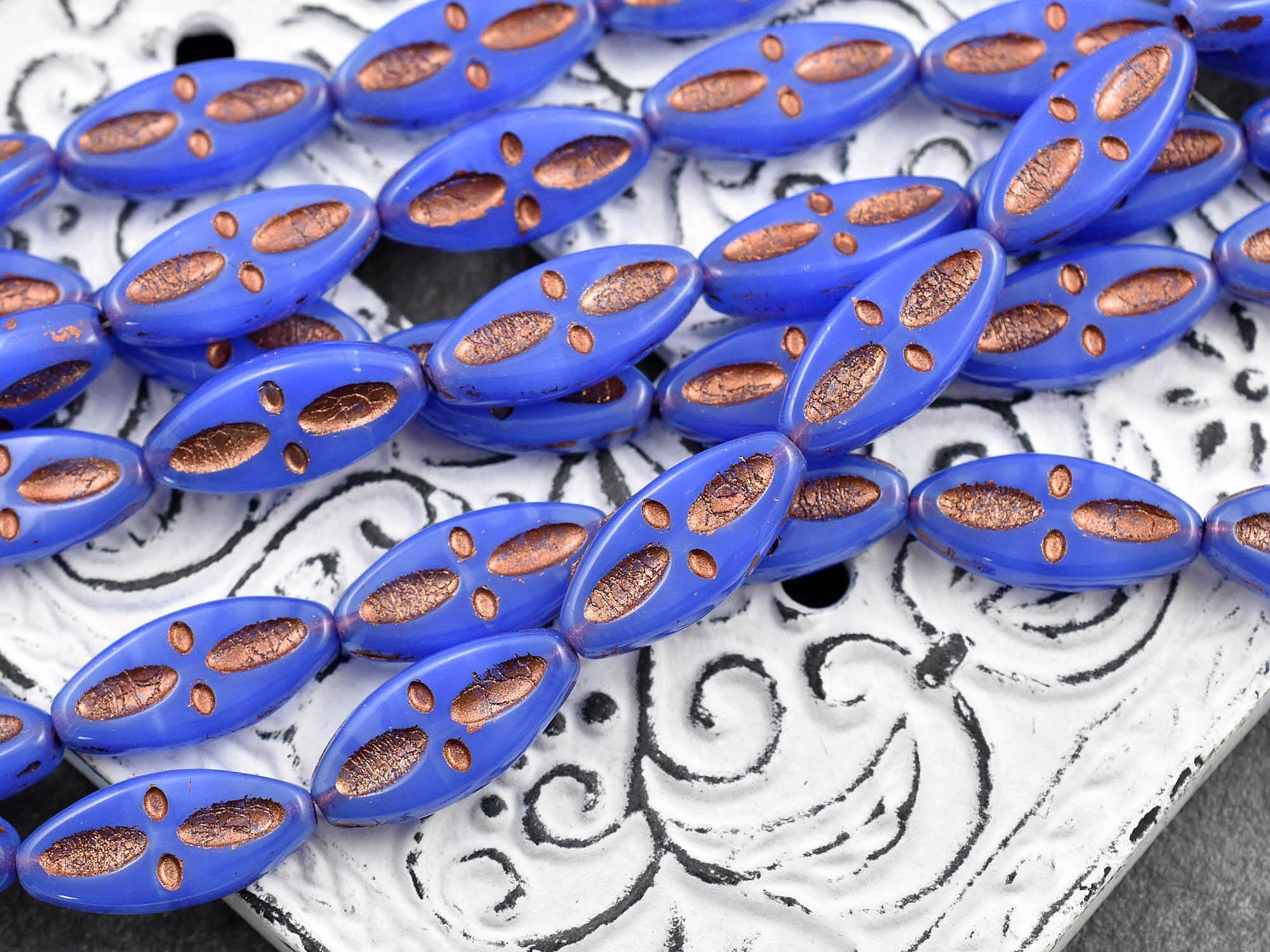 *10* 20x9mm Copper Washed Blue Opaline Marquise Oval Beads